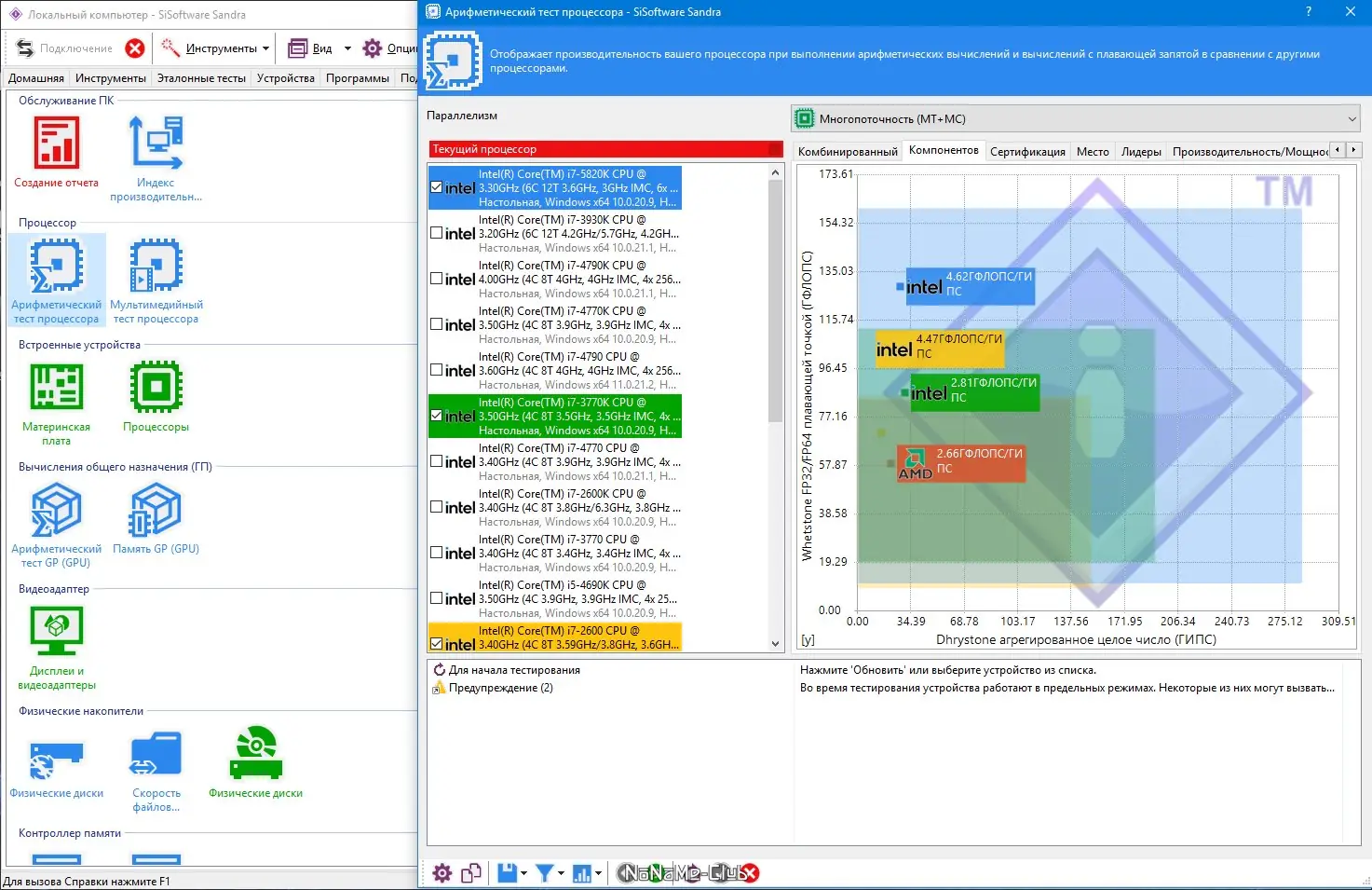 - Формирование индекса производительности, отражающего общую мощность компьютера.