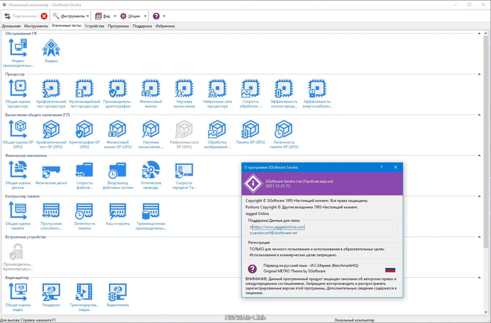 SiSoftware Sandra представляет собой комплексный инструмент, предназначенный для мониторинга, анализа и тестирования аппаратного обеспечения персонального компьютера. Версия lite доступна бесплатно и включает базовые функции, которые подойдут как обычным пользователям, так и специалистам, желающим получить точные данные о состоянии системы. Программа собирает информацию о процессоре, оперативной памяти, видеокарте, накопителях, материнской плате и других компонентах, отображая её в удобной структурированной форме.
