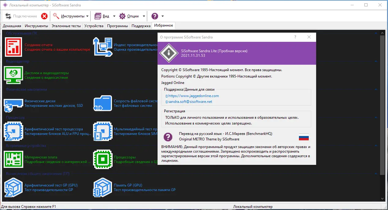 SiSoftware Sandra Lite доступна для бесплатного использования с функциональными ограничениями по сравнению с полной версией. Программа регулярно обновляется, поддерживает современные процессоры и чипсеты. Утилита совместима с 32- и 64-битными системами Windows.