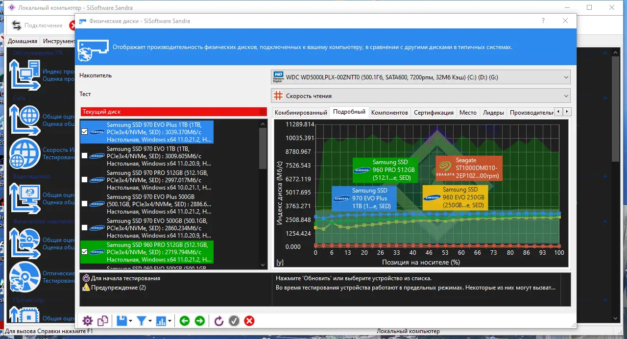 - Сравнение результатов тестов с эталонными показателями из базы данных SiSoftware.