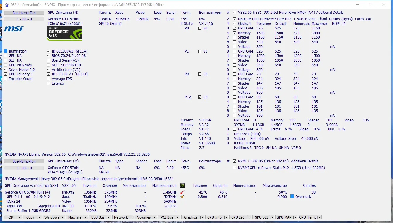 - Просмотр информации о видеокарте и текущей загрузке GPU.