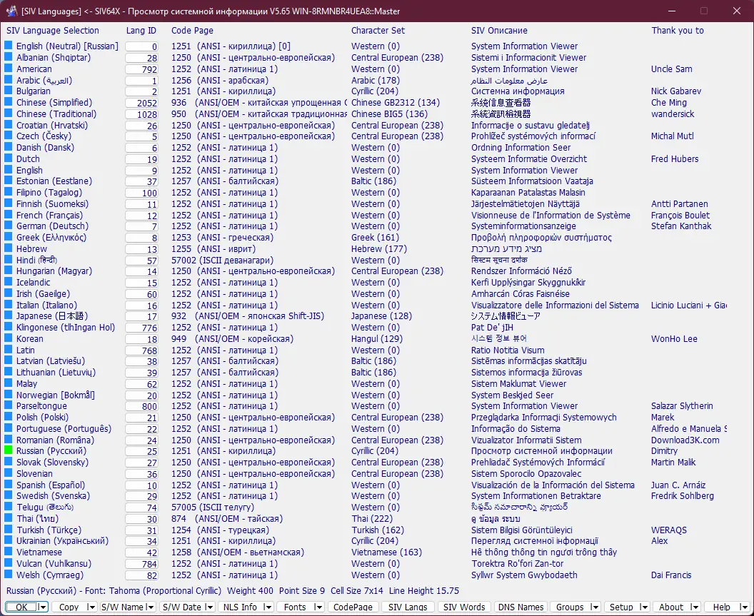 Запуск программы не требует установки — достаточно активировать portable-версию. После открытия пользователь видит панель с вкладками, где каждая отвечает за определённую категорию данных. Для смены языка интерфейса нужно перейти в раздел «Help», выбрать «SIV Languages» и указать нужный вариант, например, ru, после чего перезапустить приложение для применения изменений. Навигация интуитивно понятна, а данные обновляются динамически.