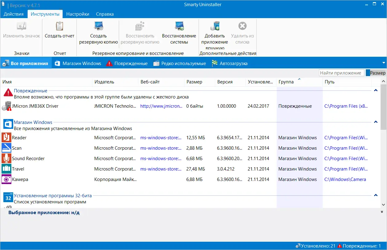 Smarty обеспечивает безопасное и полное удаление программ без риска повреждения системы.