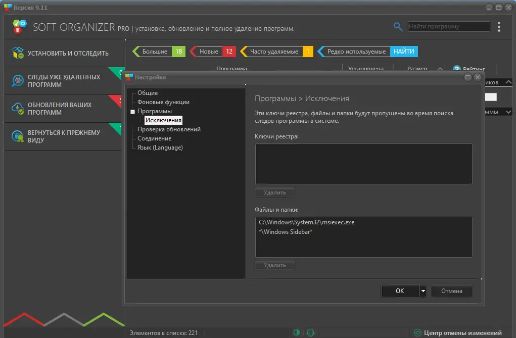 Soft Organizer не просто удаляет программы — он восстанавливает систему к состоянию, предшествующему установке приложения.