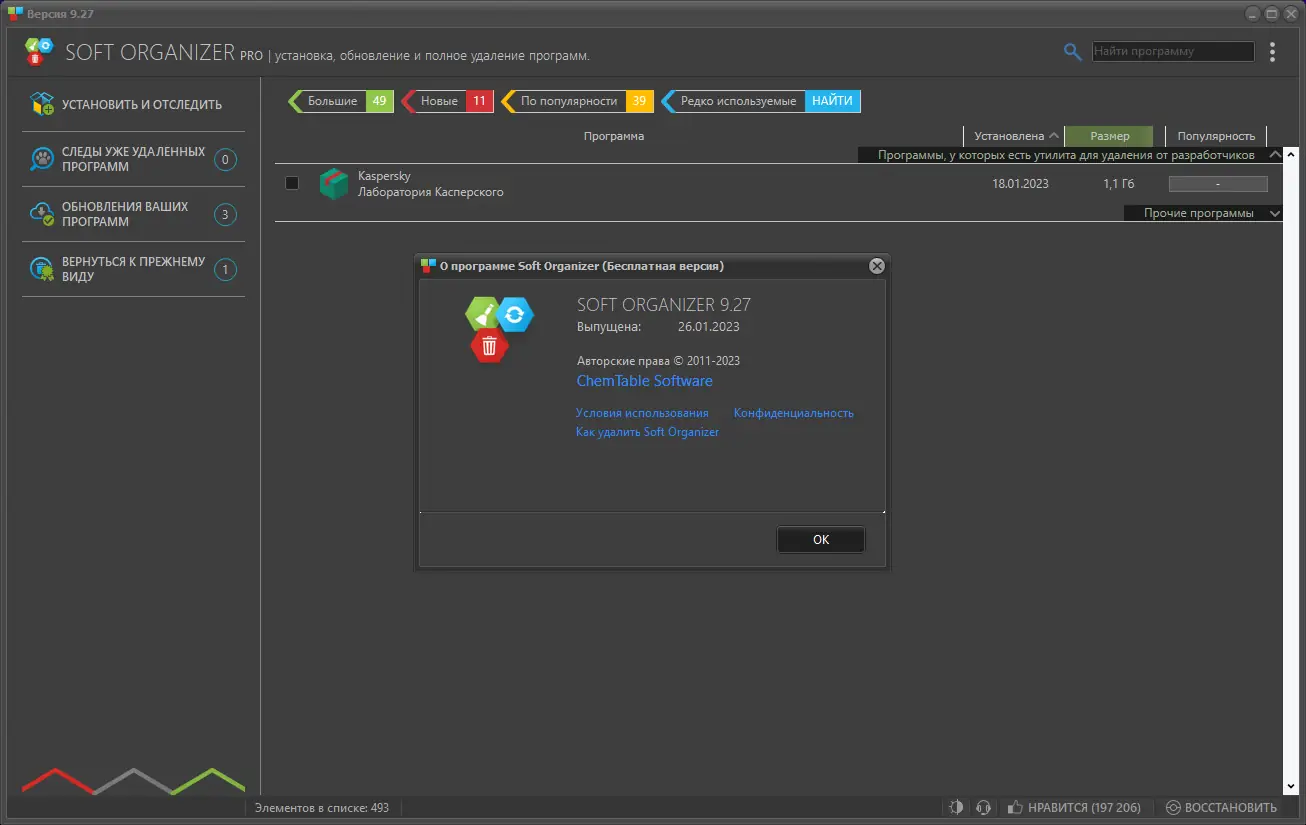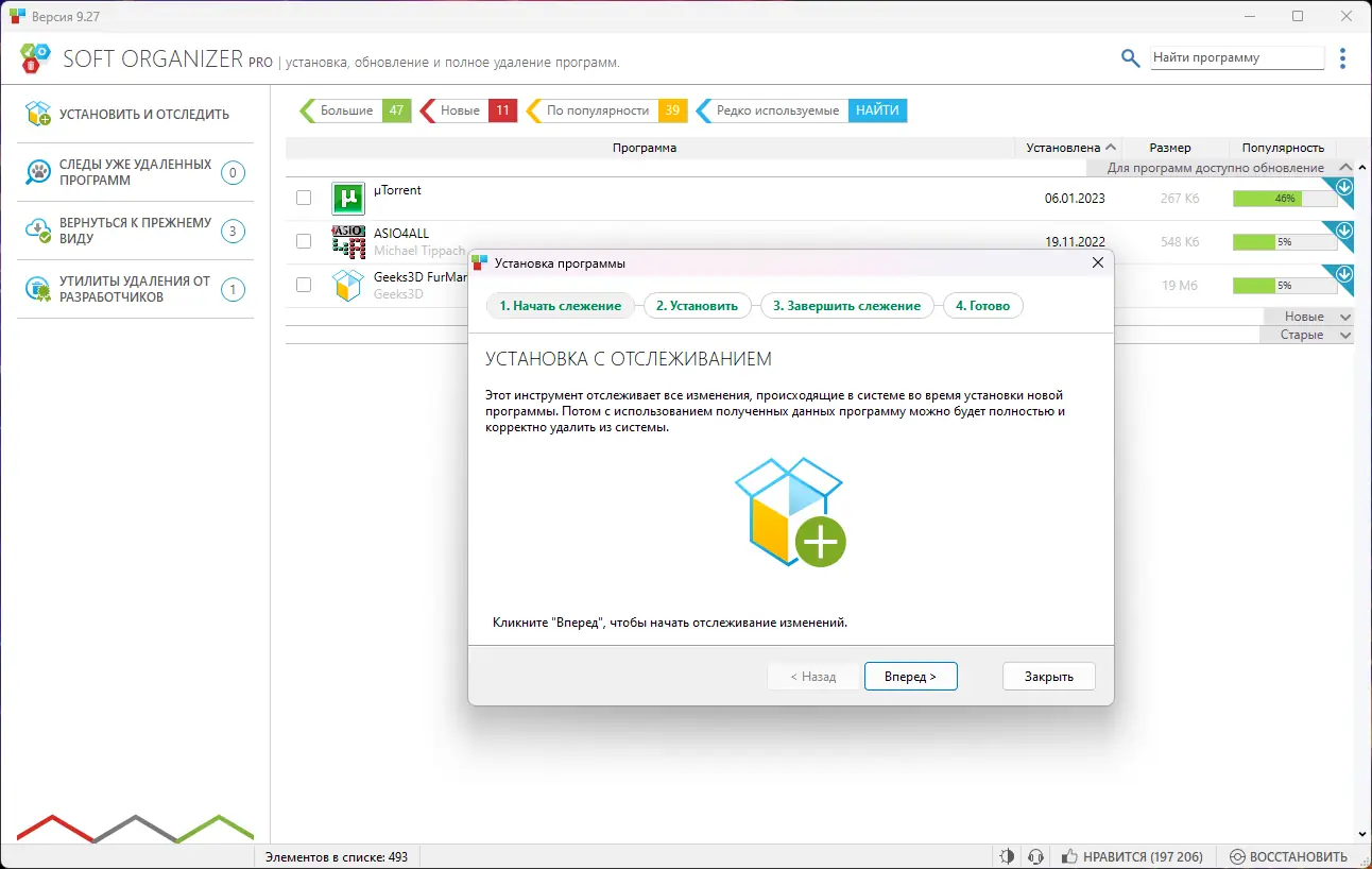 Soft Organizer — это мощная утилита для полного и чистого удаления программ из операционной системы Windows. В отличие от стандартного деинсталлятора, она удаляет не только основные файлы приложения, но и все следы в реестре, временные данные, папки и остаточные записи. Благодаря технологии мониторинга изменений, программа обеспечивает глубокую очистку системы после удаления софта, предотвращая накопление мусора и замедление работы компьютера.