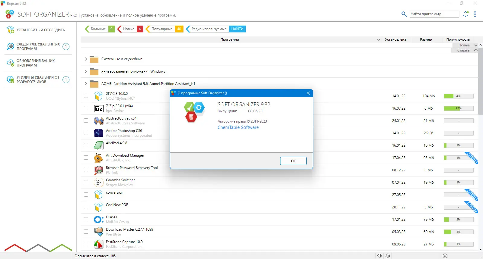 Soft Organizer — это мощная утилита для полного удаления программ из операционной системы, которая устраняет не только приложения, но и все следы их работы: временные файлы, папки, записи в реестре и остатки настроек. Даже стандартные средства деинсталляции часто оставляют после себя мусор, замедляющий работу компьютера. Soft Organizer решает эту проблему, обеспечивая чистое и безопасное удаление любого программного обеспечения с детальным контролем изменений в системе.