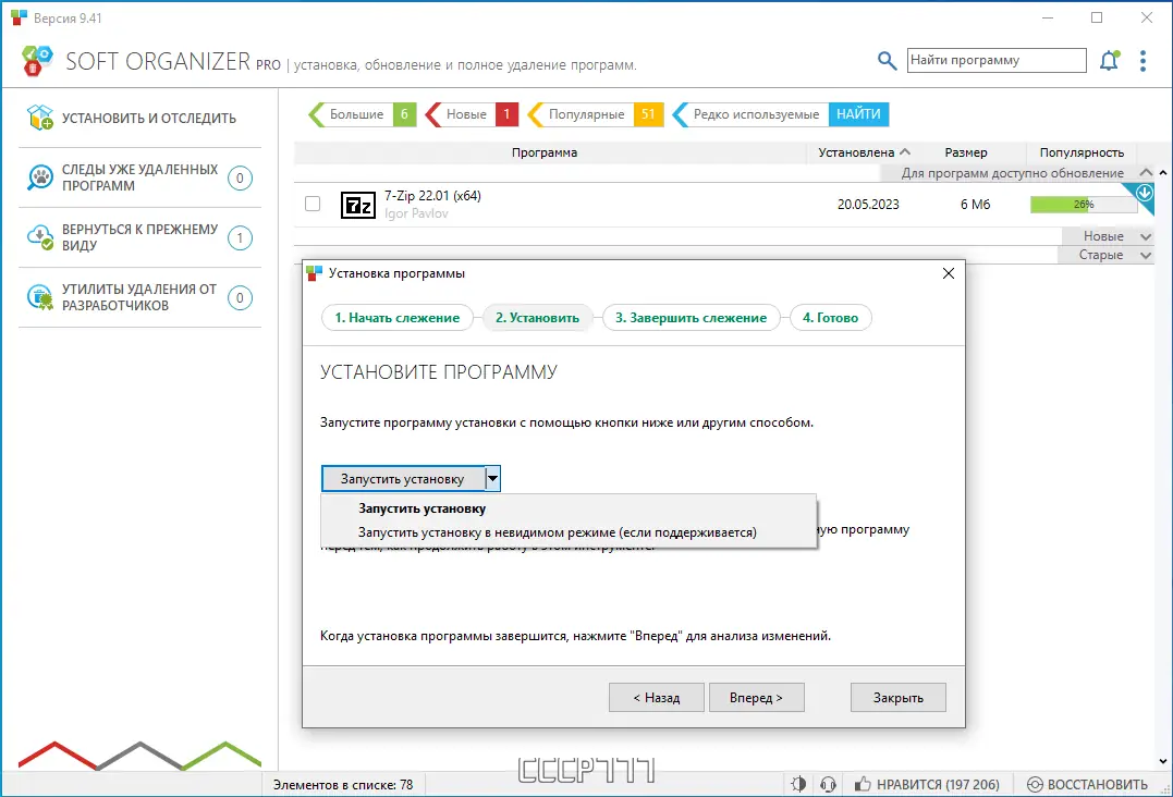 - Версия pro расширяет функционал, включая поиск остатков ранее удалённых программ и автоматическую установку с отслеживанием.