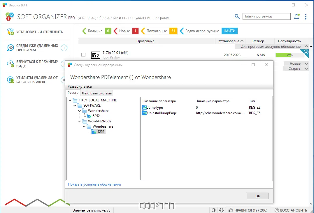 Soft Organizer — это утилита для полного удаления программ из операционной системы, которая устраняет не только основные файлы приложений, но и остаточные данные, включая записи в реестре и скрытые папки. Даже при использовании встроенных деинсталляторов многие программы оставляют после себя следы, которые со временем замедляют работу системы. Soft Organizer решает эту проблему, обеспечивая чистое и безопасное удаление программ без следов.
