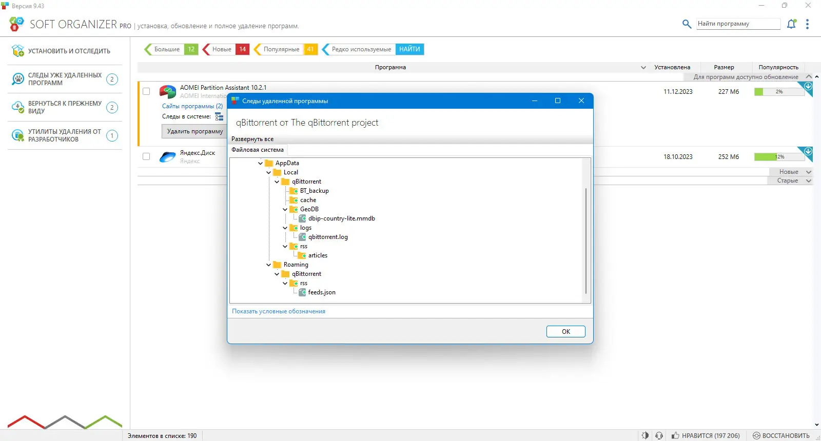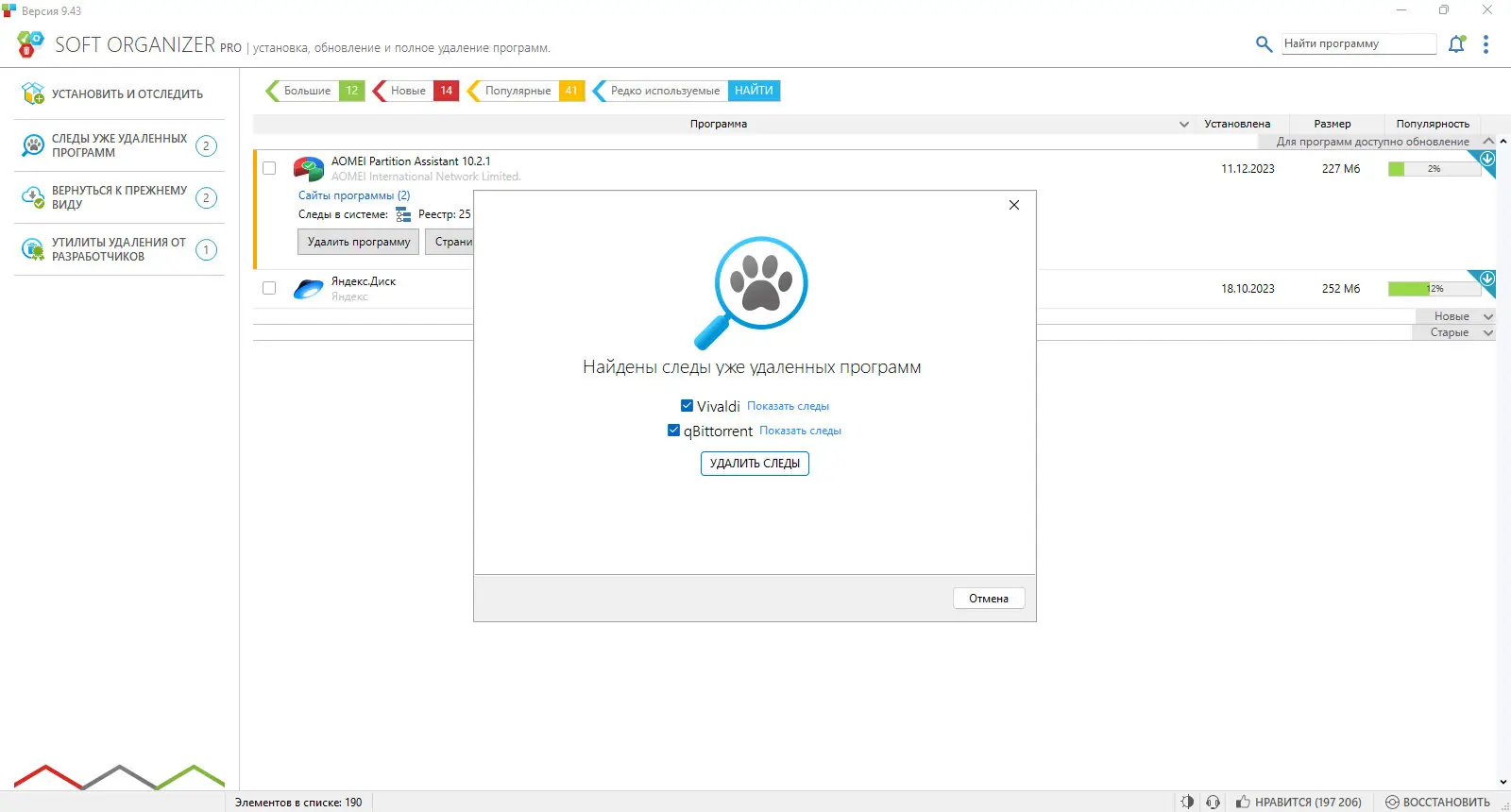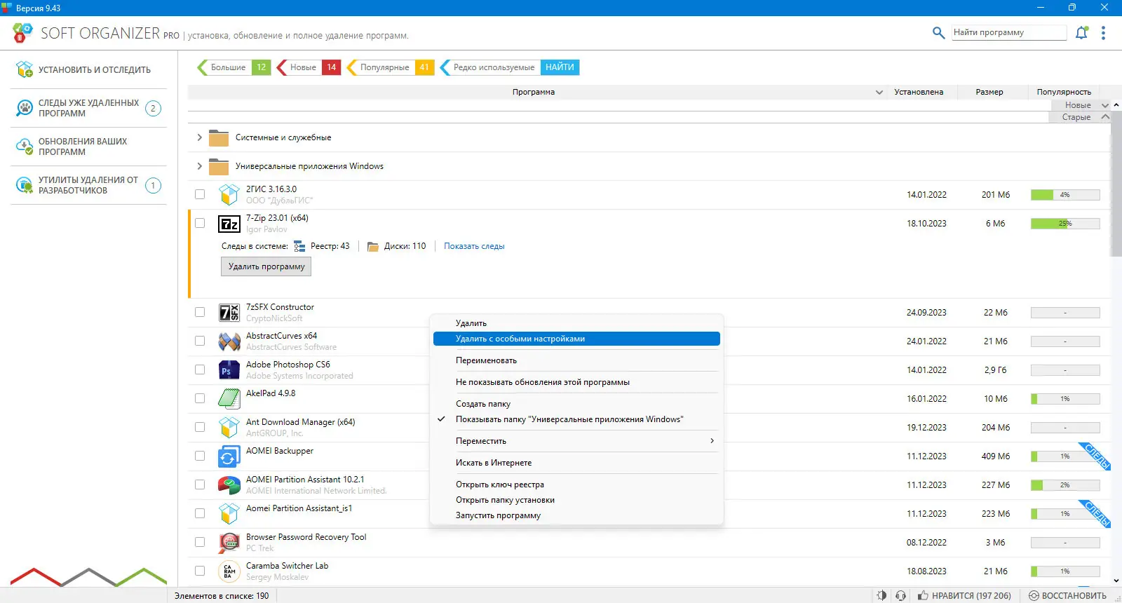 - Быстрое удаление приложений с автоматической очисткой следов