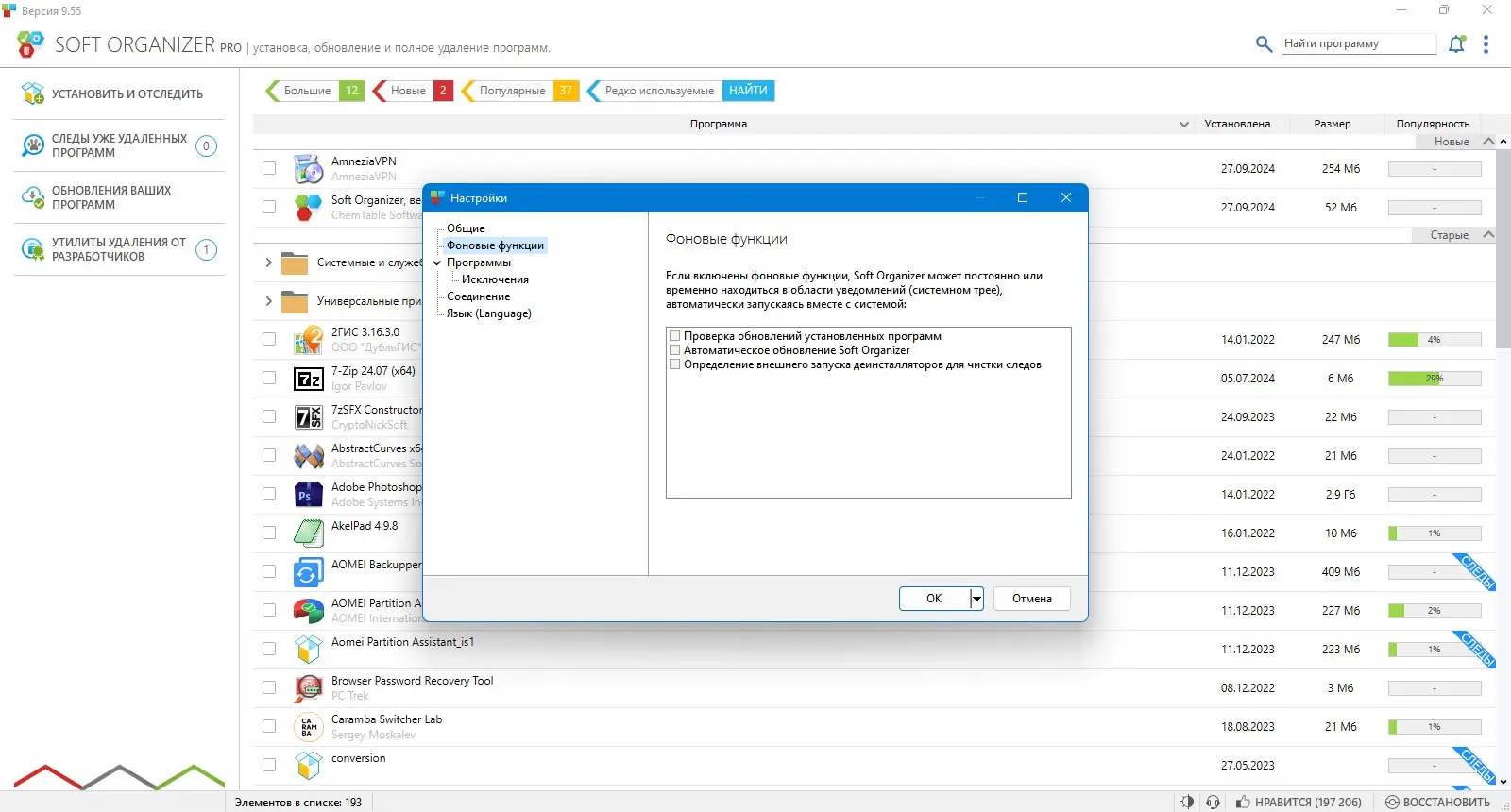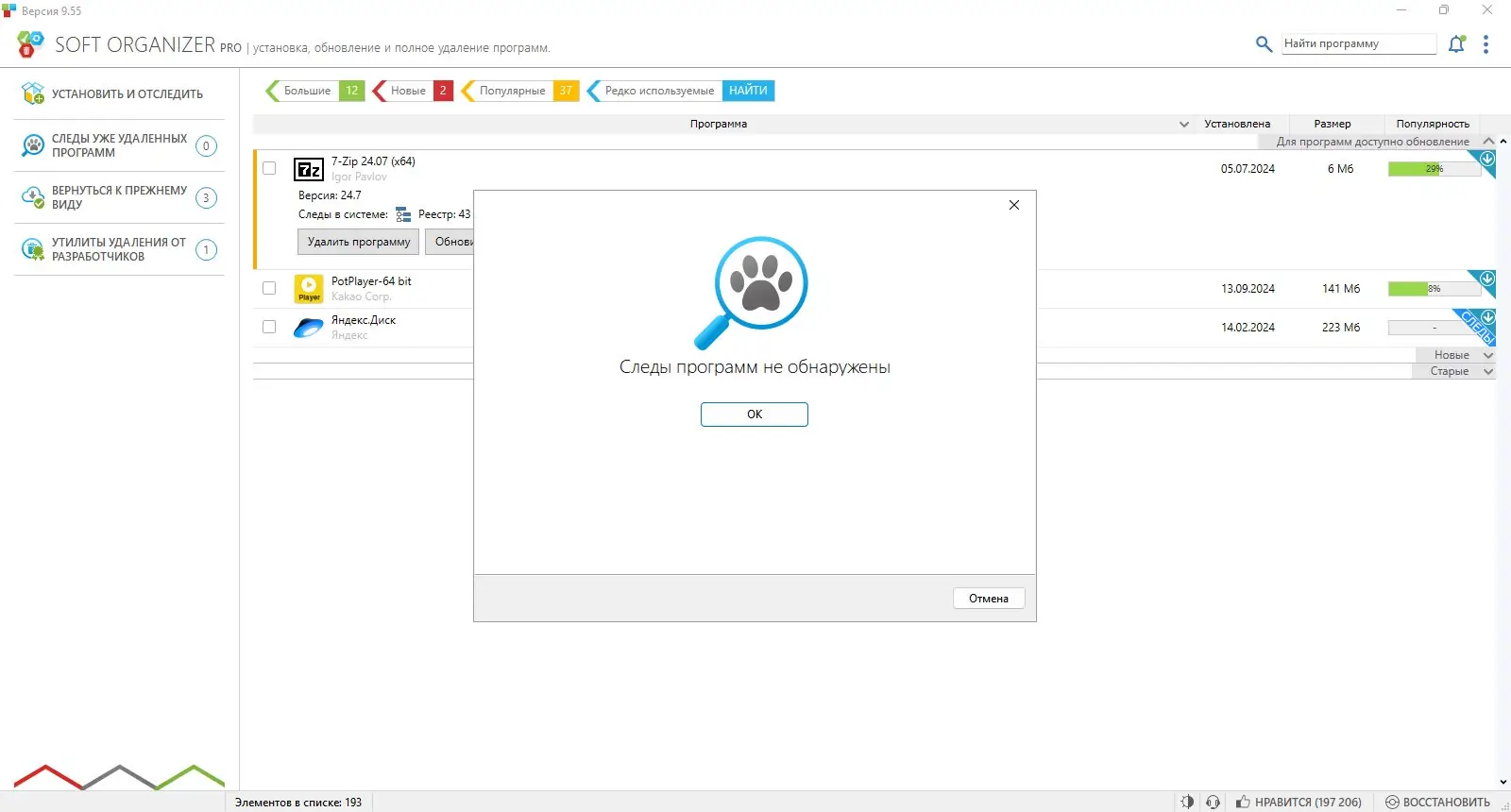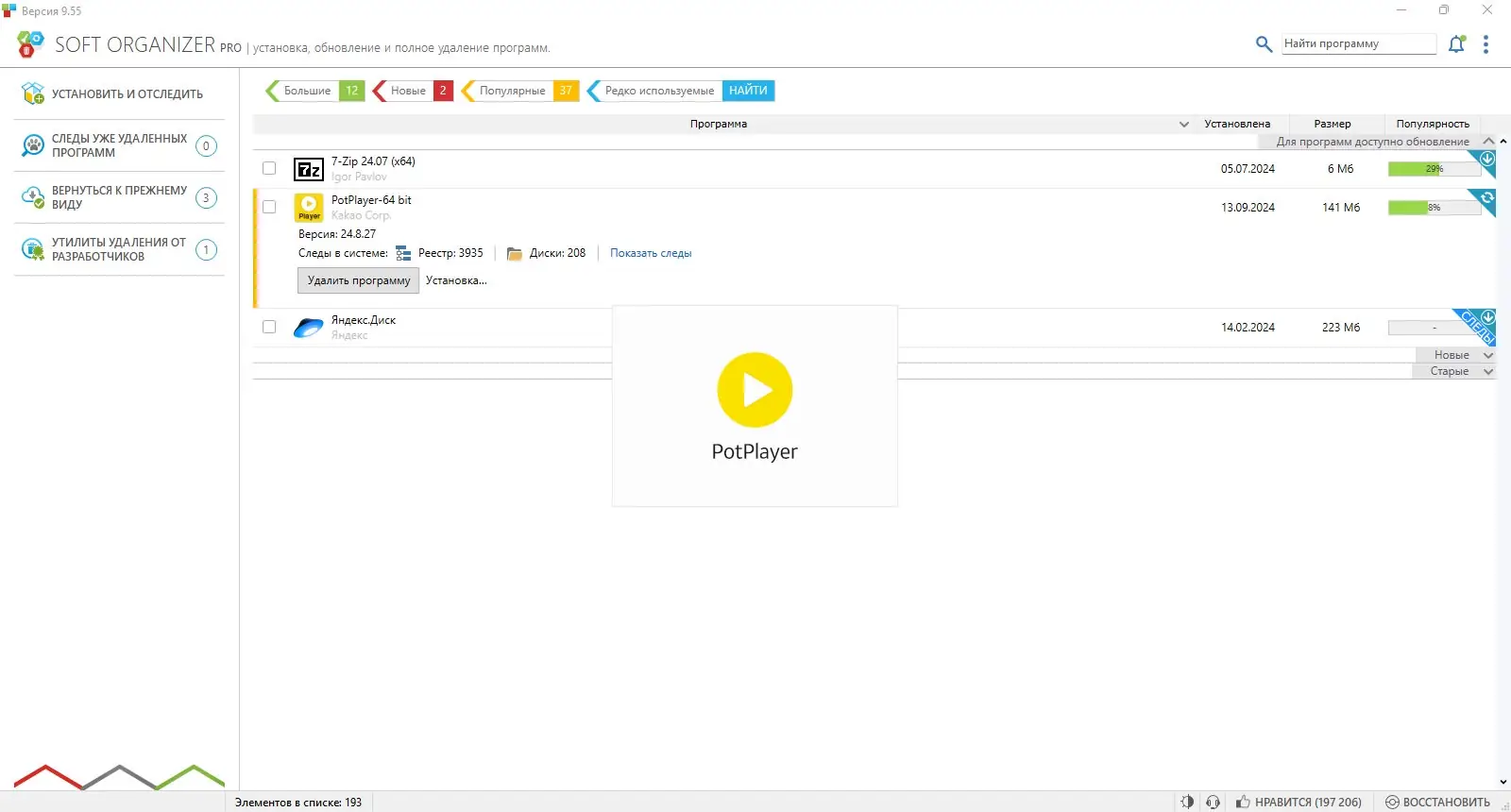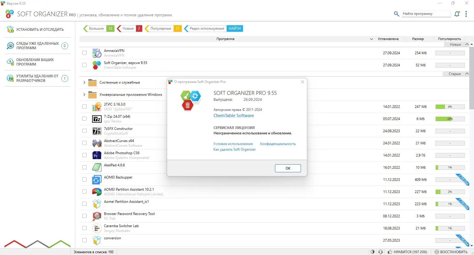 Soft Organizer — это инструмент для полного удаления программ из операционной системы, который устраняет не только основные файлы приложений, но и все следы, оставшиеся в реестре и на диске. В отличие от стандартного деинсталлятора Windows, утилита отслеживает изменения в системе с момента установки программы и обеспечивает чистое удаление без остатков. Это помогает освободить место на жёстком диске и поддерживать систему в оптимальном состоянии.
