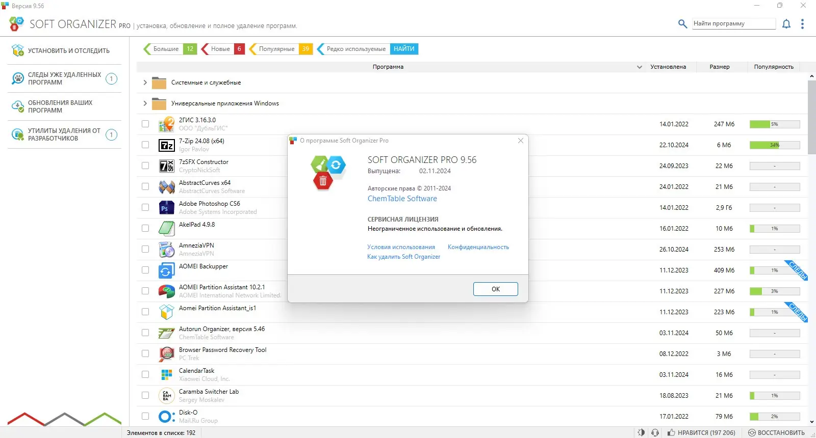 Soft Organizer — это эффективная утилита для полного удаления программ из операционной системы, способная очищать систему от остаточных файлов, папок и записей в реестре, остающихся после стандартной деинсталляции. Программа отслеживает все изменения, вносимые при установке приложений, что позволяет в дальнейшем удалить их без следа. Инструмент особенно полезен для поддержания чистоты системы и предотвращения накопления мусора.