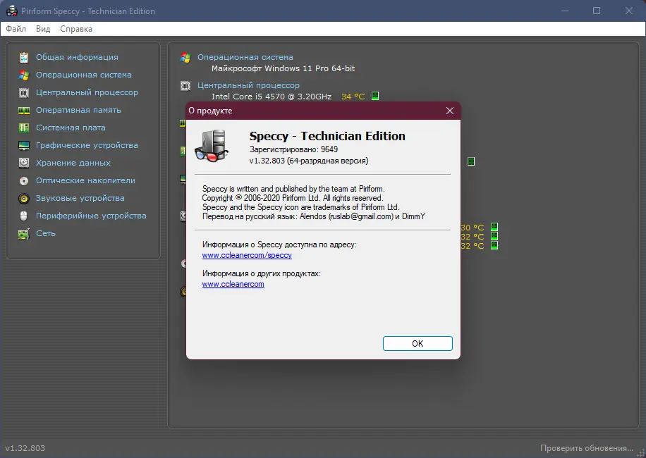 Speccy разработана командой Piriform, известной по таким продуктам, как CCleaner и Defraggler. Утилита предназначена для диагностики и мониторинга аппаратного обеспечения ПК, предоставляя детализированные сведения в удобном интерфейсе. После запуска она автоматически сканирует систему и отображает информацию по ключевым компонентам.