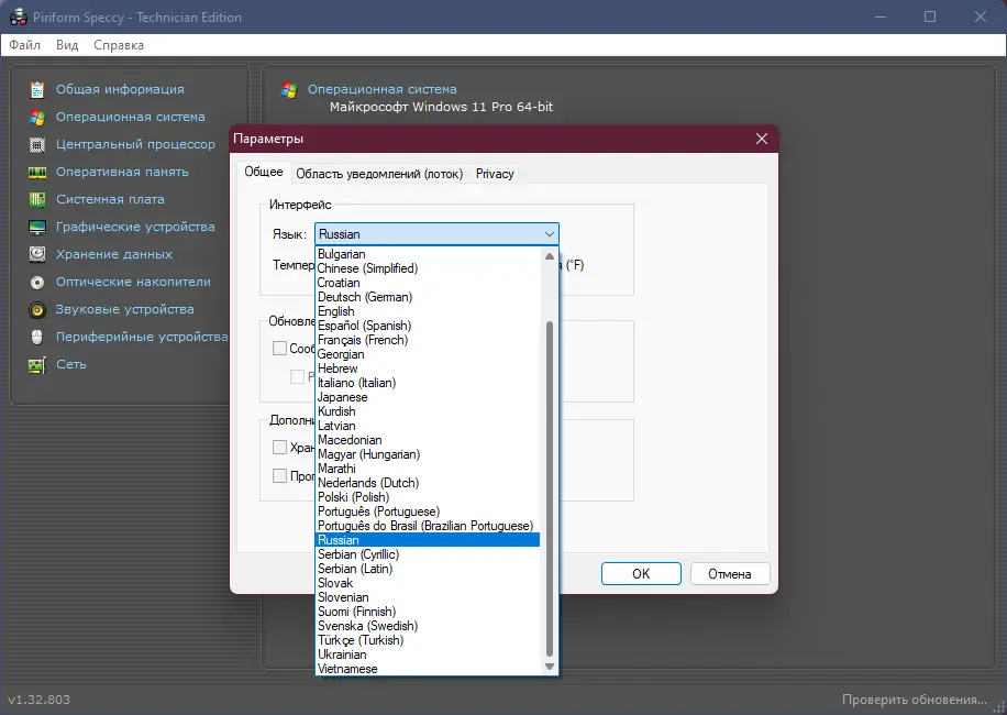 Работа с Speccy