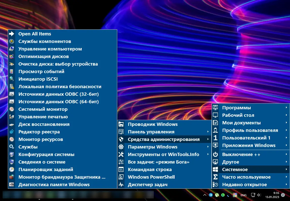 - Меню можно отображать в любом месте экрана, включая многомониторные конфигурации.