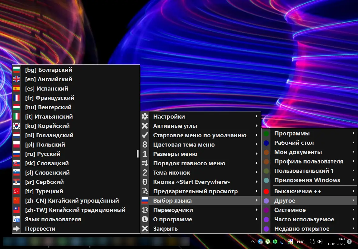 Пользоваться программой просто: после запуска меню становится доступно по заданному триггеру — клику по кнопке, наведению на активный угол или нажатию комбинации клавиш. Пользователь может установить собственную стартовую папку для отображения нужных ярлыков и определить количество пунктов, отображаемых в списке. Элементы интерфейса легко адаптируются под индивидуальные предпочтения — изменяется шрифт, цвет фона, размер иконок. Для Windows 11 рекомендуется выравнивание панели задач по левому краю, что обеспечивает корректное позиционирование меню. После изменения настроек системы может потребоваться перезапуск приложения для корректного отображения.