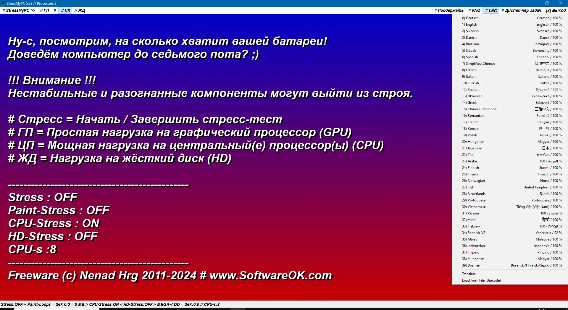 Работа с StressMyPC
