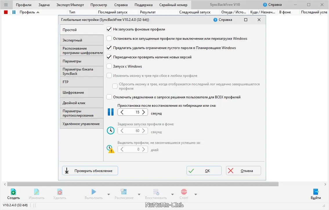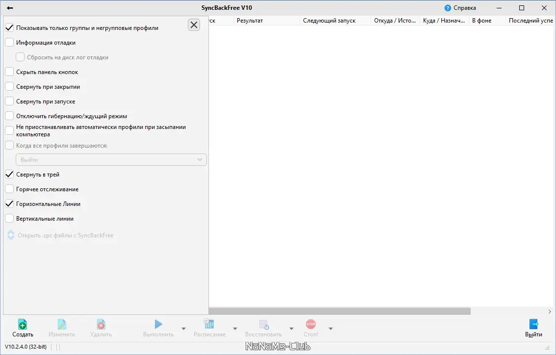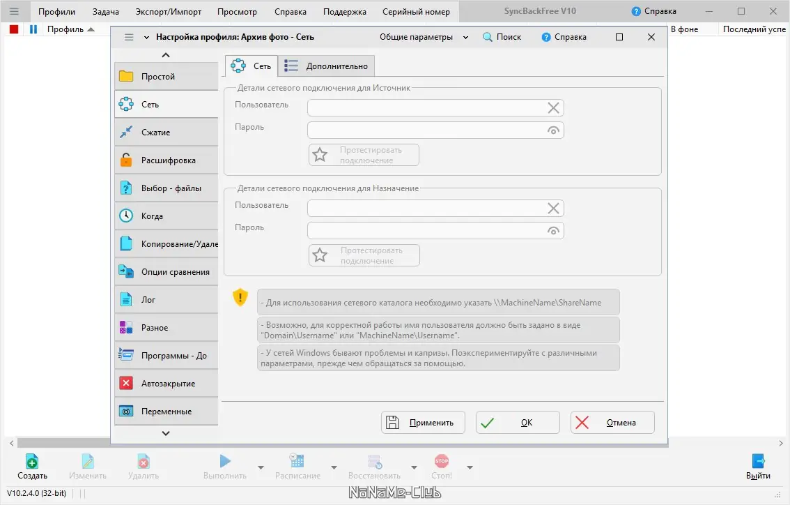 Работа с SyncBack