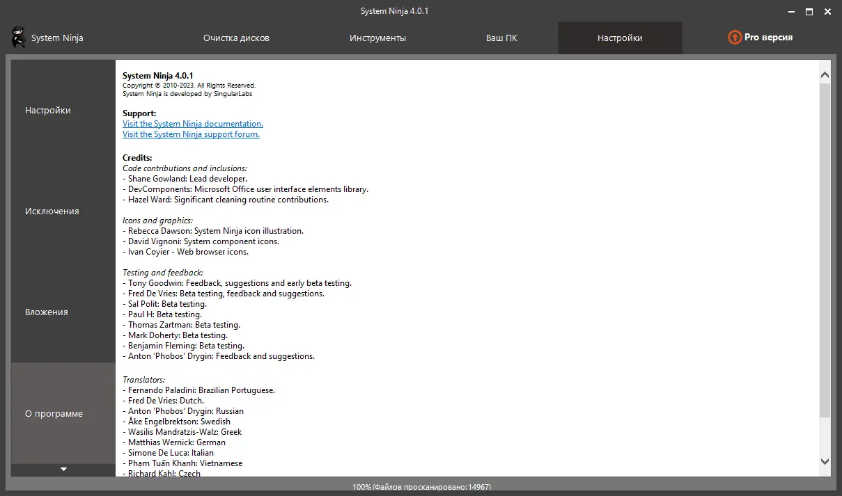 System Ninja — это бесплатная утилита для глубокой очистки системы от временных файлов, следов активности и ненужных записей. Программа сканирует всю файловую систему, находя «мусор» в неожиданных местах, и предоставляет пользователю полный контроль над каждым удаляемым элементом. Благодаря точному анализу и гибким настройкам, инструмент подходит как новичкам, так и продвинутым пользователям, стремящимся поддерживать систему в порядке.