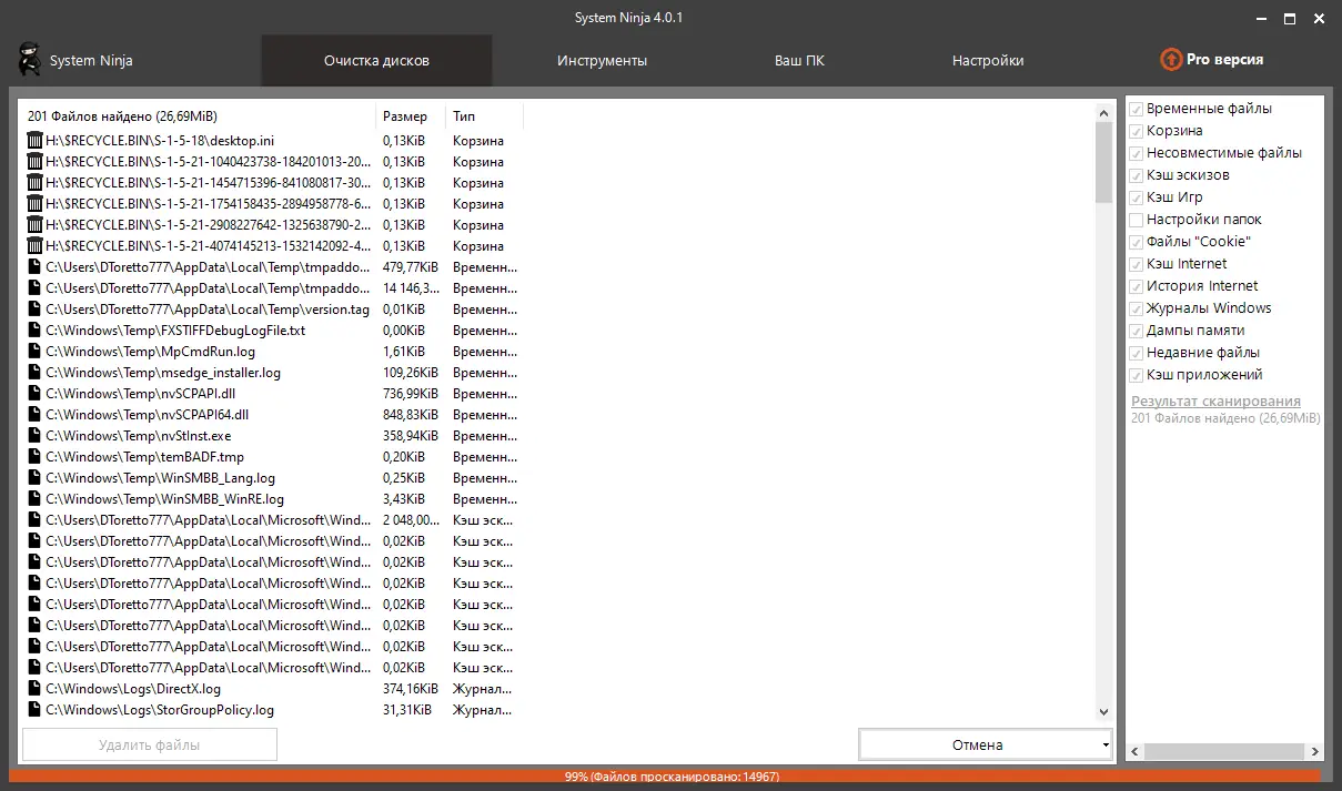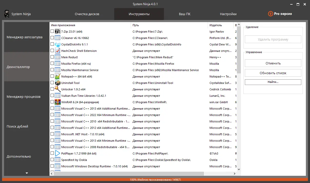 System Ninja не просто удаляет мусор — она даёт полное понимание того, что и зачем удаляется, минимизируя риски потери важных данных.