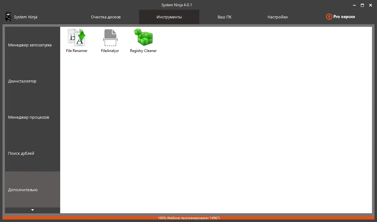 Работа с System Ninja