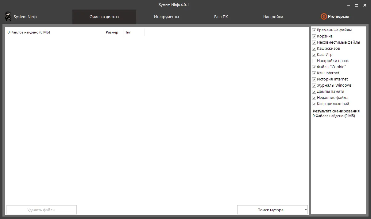 System Ninja — это мощная утилита, ориентированная на оптимизацию производительности операционной системы за счёт удаления ненужных данных. В отличие от многих аналогов, программа не ограничивается стандартными папками с временными файлами, а проводит всестороннее сканирование диска, выявляя скрытый мусор, включая остатки удалённых программ, кэши приложений и файлы автосохранения. После анализа система формирует детализированный отчёт, позволяя выбрать, какие файлы следует удалить, а какие — оставить.
