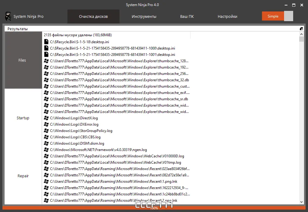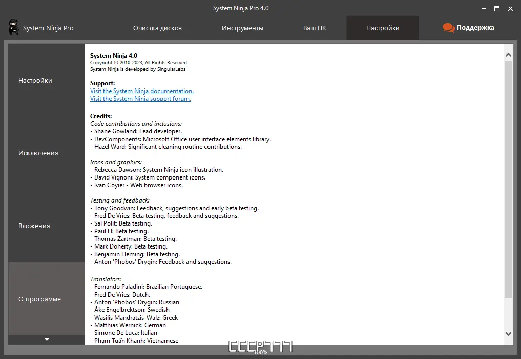 System Ninja — мощная утилита для глубокой очистки и оптимизации операционной системы Windows. Программа эффективно удаляет временные файлы, следы активности, кэш приложений и другие элементы, замедляющие работу компьютера. Благодаря тщательному сканированию всей файловой системы, а не только стандартных каталогов, она обеспечивает более полное освобождение дискового пространства и повышение общей производительности.