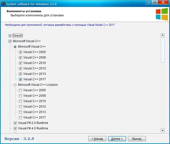 Программа избавляет от необходимости вручную искать и устанавливать десятки распространяемых пакетов — всё в одном месте, с логичной структурой и понятным интерфейсом.