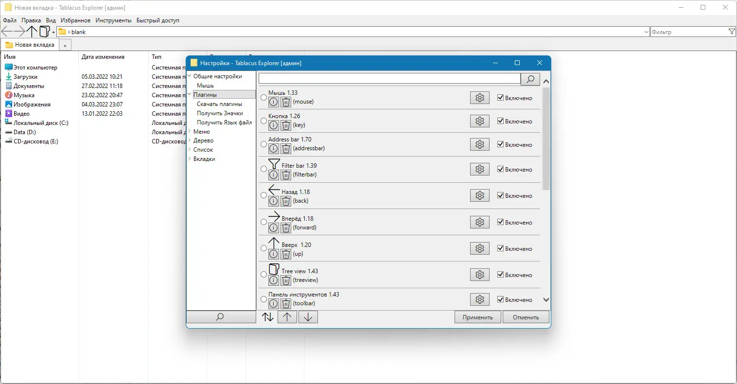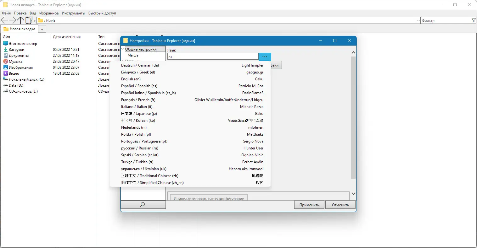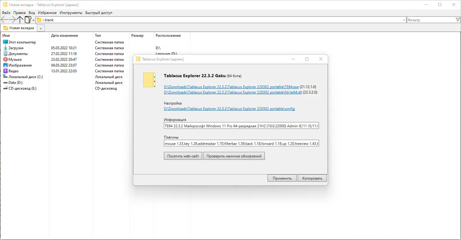 Работа с Tablacus Explorer