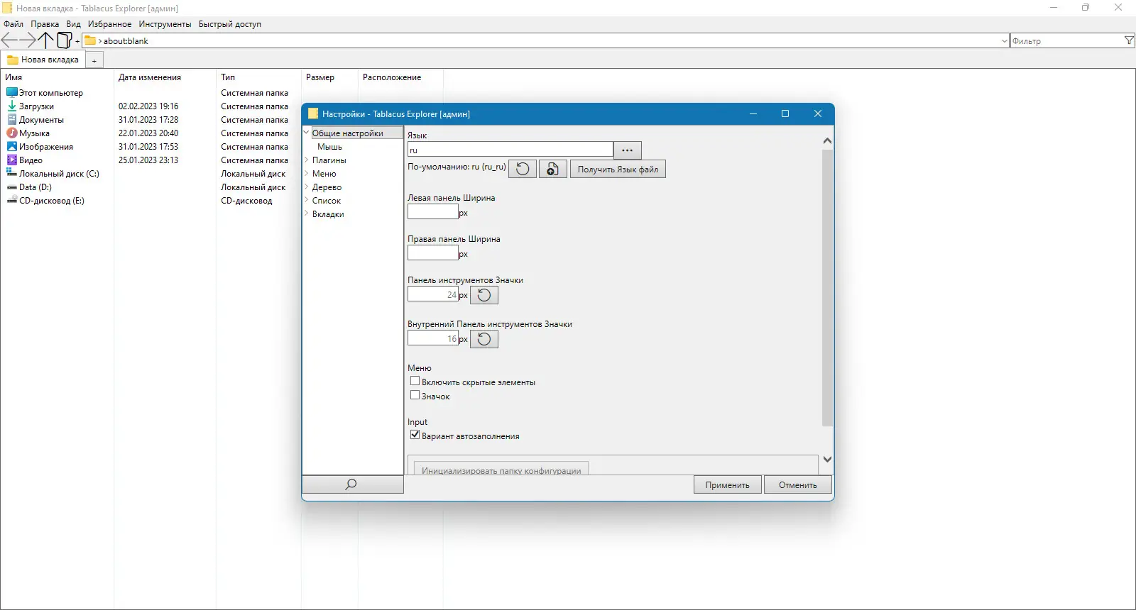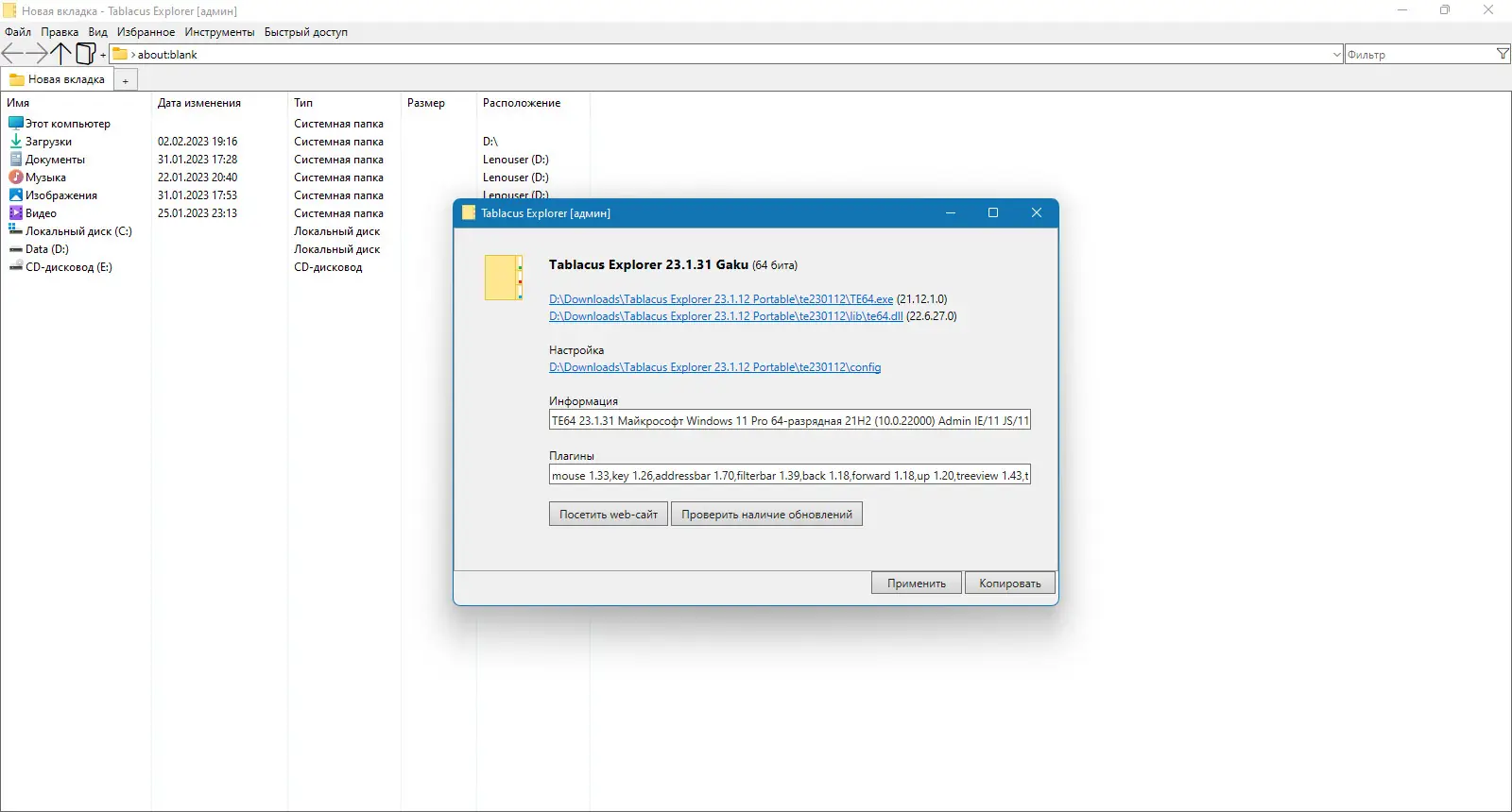 Работа с Tablacus Explorer