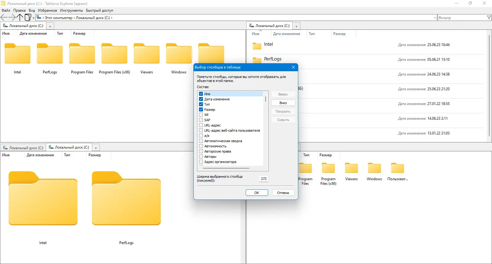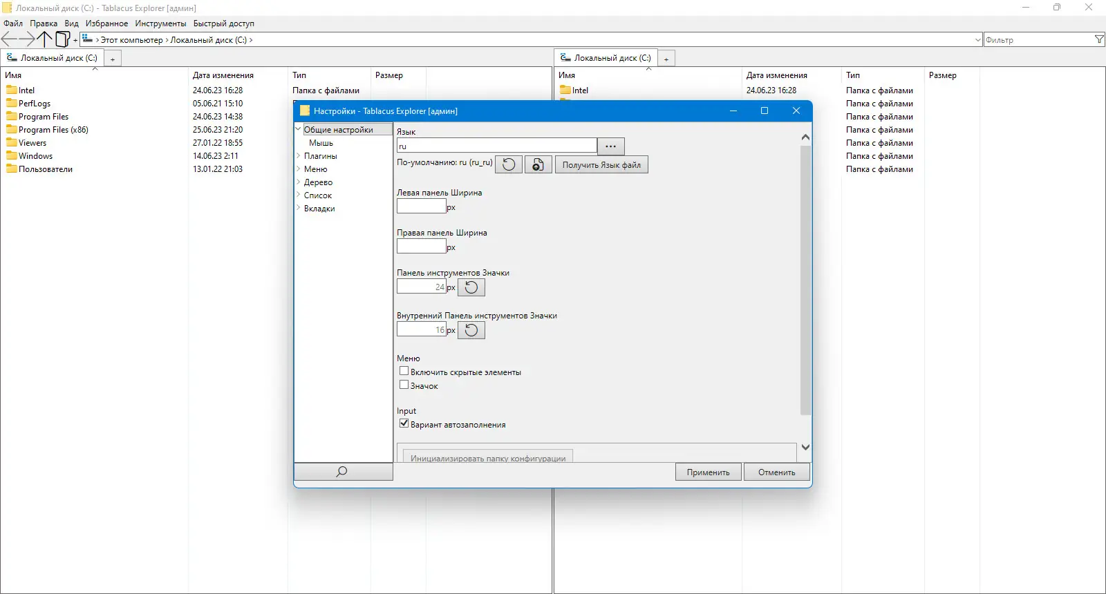 Работа с Tablacus Explorer