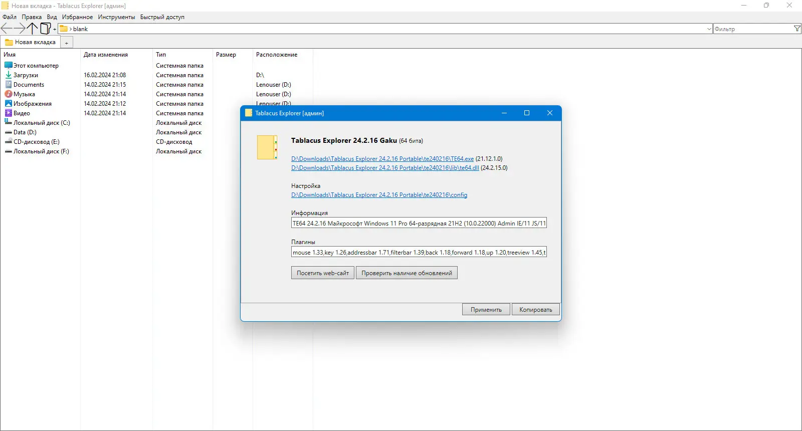 Работа с Tablacus Explorer