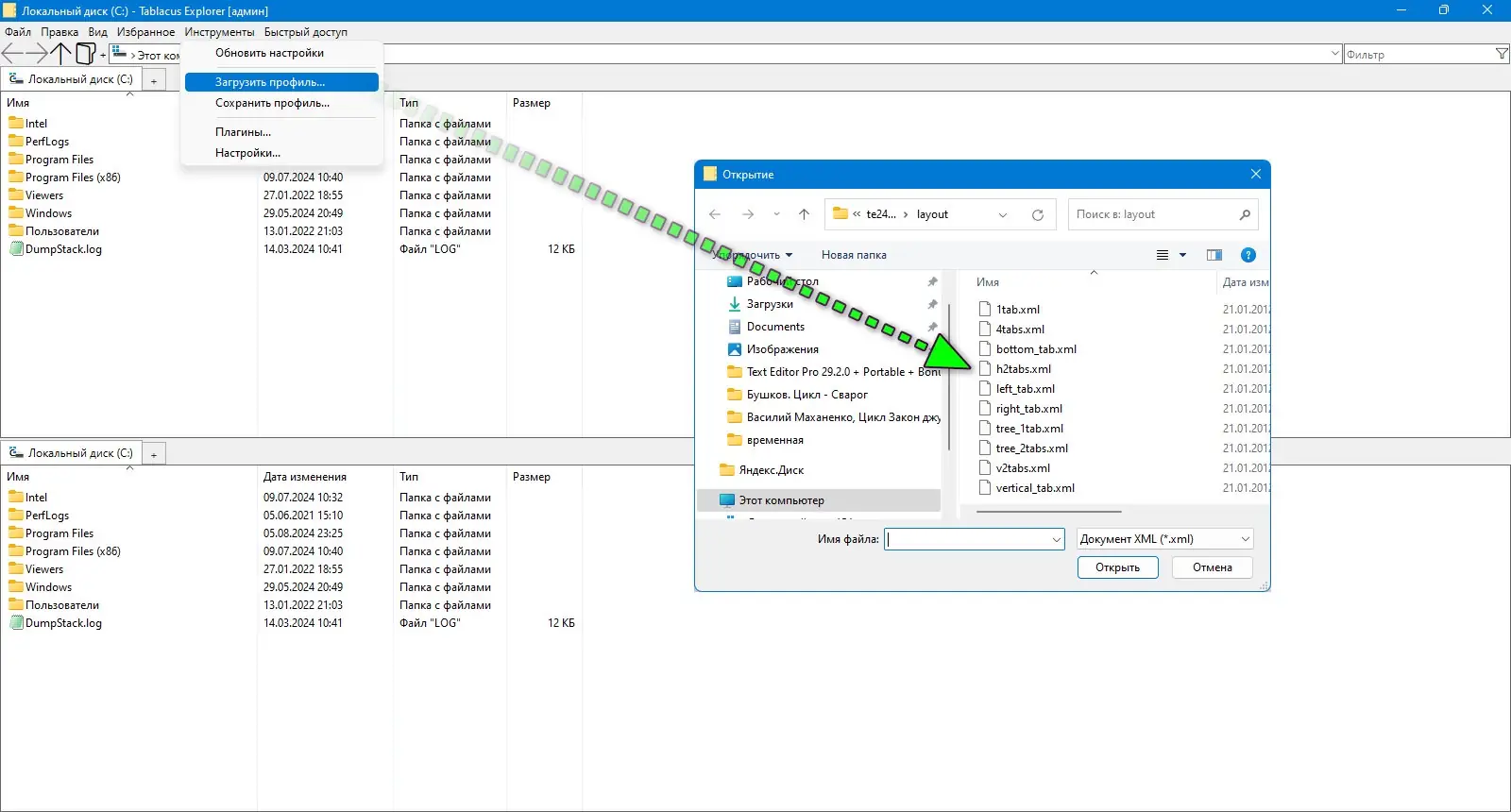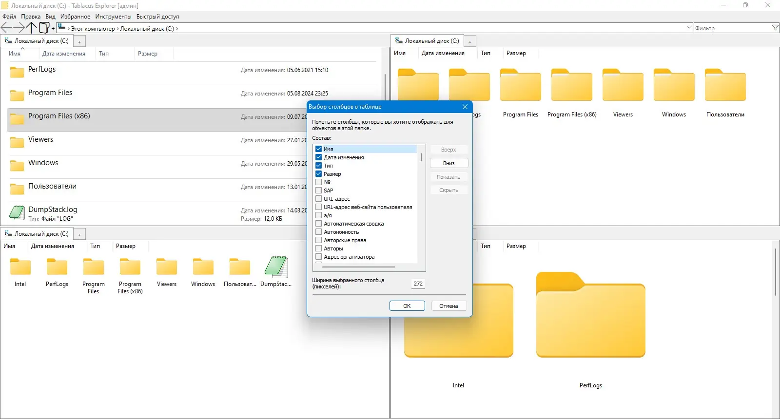 Работа с Tablacus Explorer