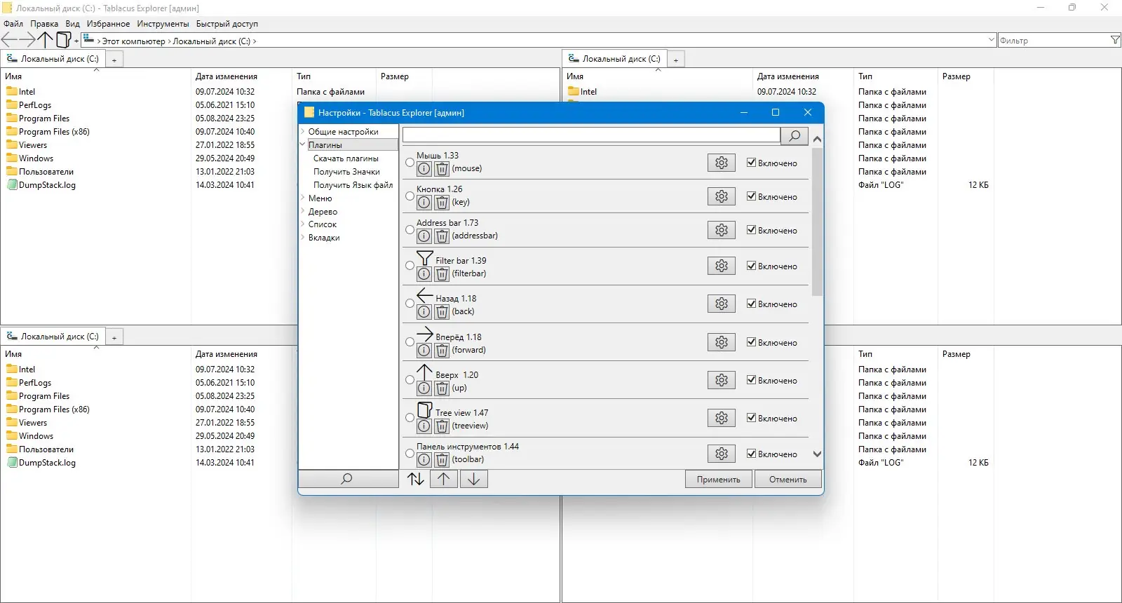 Tablacus Explorer — это легковесный, портативный файловый менеджер для Windows, сочетающий привычный интерфейс Проводника с расширенными возможностями. Программа поддерживает многовкладочный режим, работу с несколькими панелями и настройку через плагины, что делает управление файлами более эффективным и удобным.