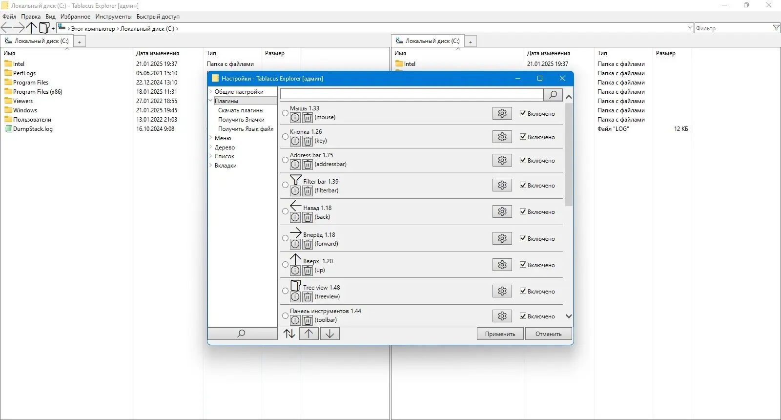 Использование Tablacus Explorer интуитивно понятно благодаря схожести с проводником Windows. Для открытия новой вкладки достаточно перетащить папку на панель вкладок или воспользоваться контекстным меню. Дополнительные функции активируются через меню «Инструменты», где доступен менеджер плагинов для скачивания и подключения расширений. Настройка интерфейса осуществляется через встроенные параметры отображения, ширины панелей, цветовых схем и поведения вкладок. Пользователь может сохранить текущую конфигурацию как профиль и быстро переключаться между разными рабочими средами.