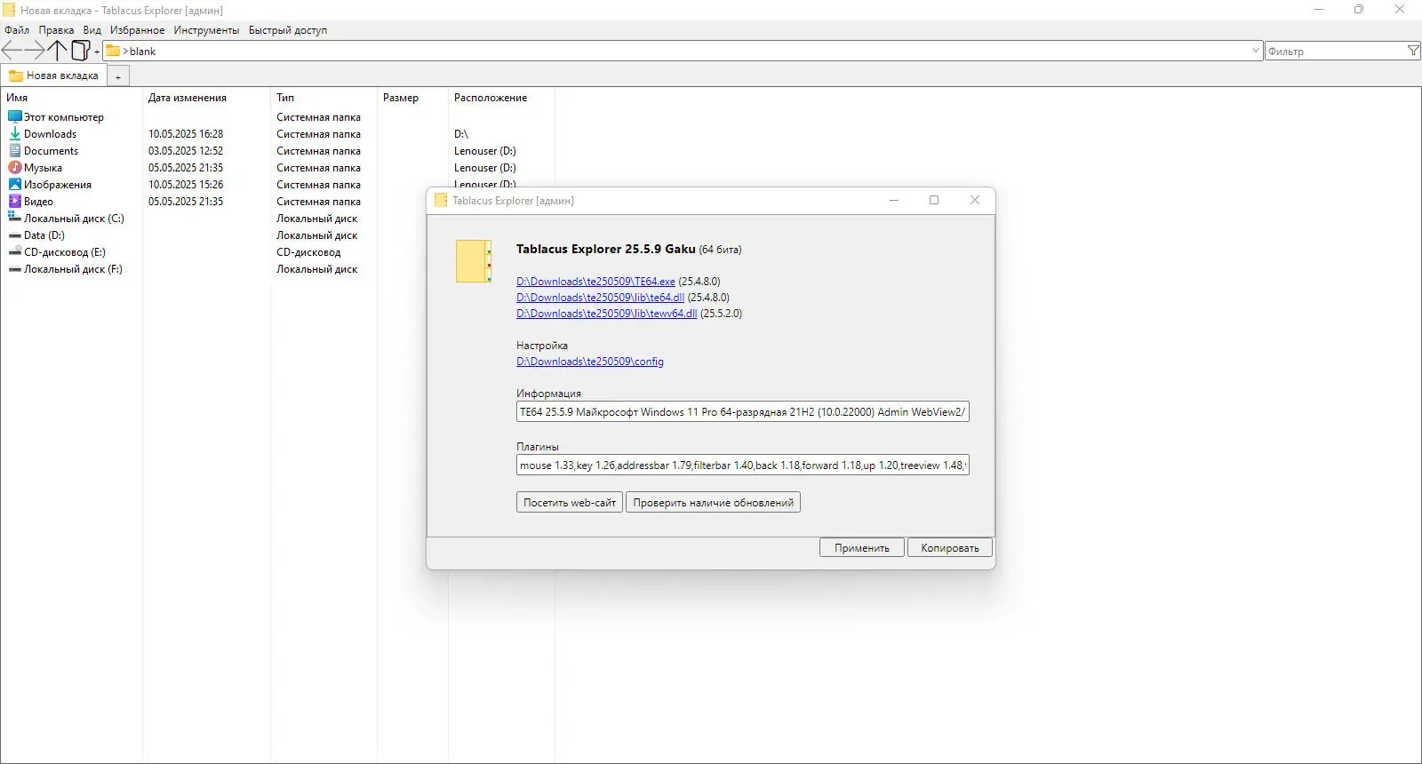 Tablacus Explorer — это эффективное решение для управления файлами, сочетающее простоту, скорость и гибкость. Программа поддерживает работу с различными типами файловых систем, обеспечивает быструю навигацию и позволяет настраивать окружение под индивидуальные потребности. Благодаря поддержке расширений, таких как буфер обмена, избранное и жесты мыши, пользователь может адаптировать её под любой рабочий процесс. Несмотря на компактный размер, функционал программы сравним с профессиональными инструментами. Версия 25.5.9 включает улучшения стабильности и совместимости с последними обновлениями Windows. Программу можно скачать на странице.