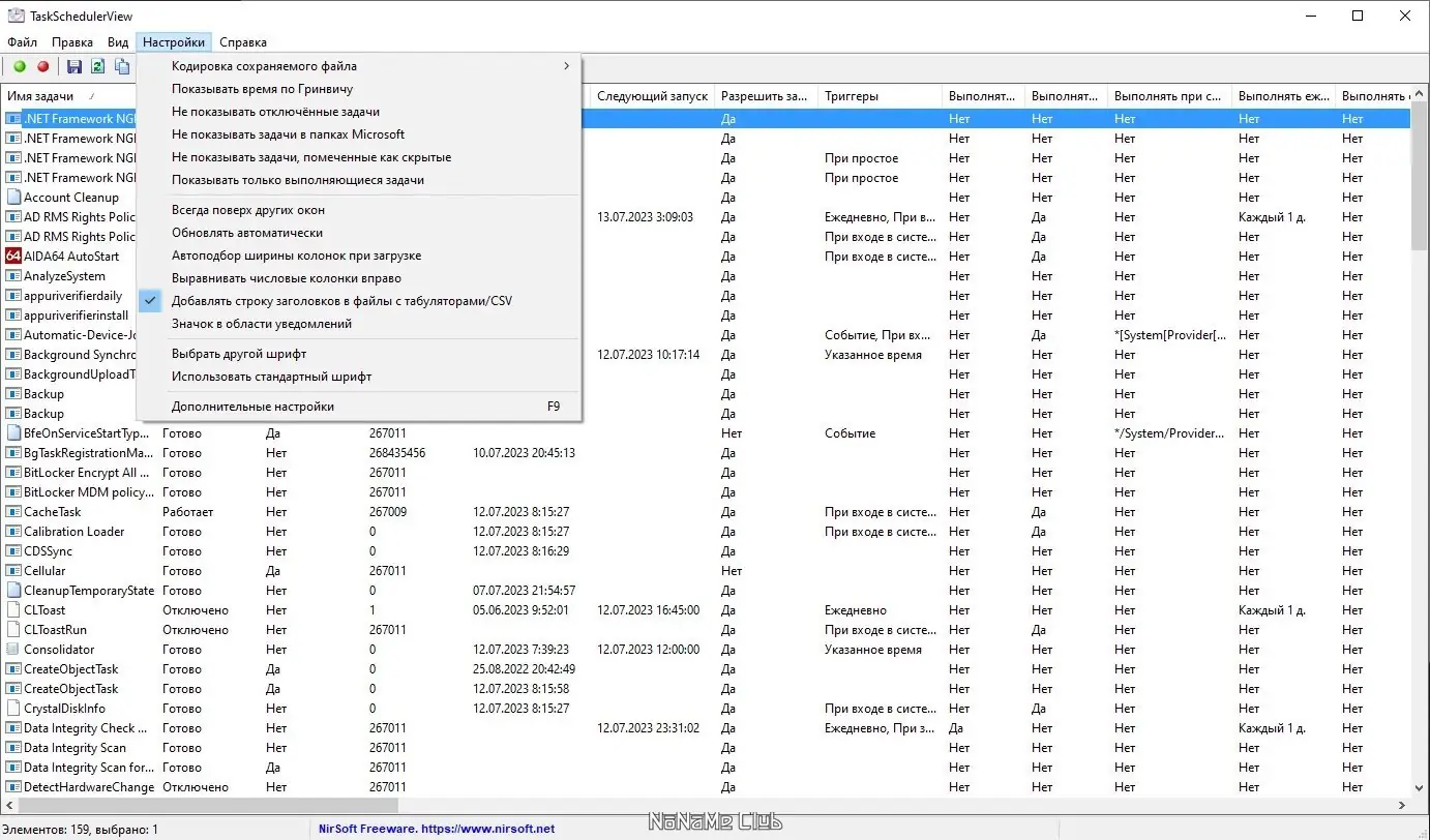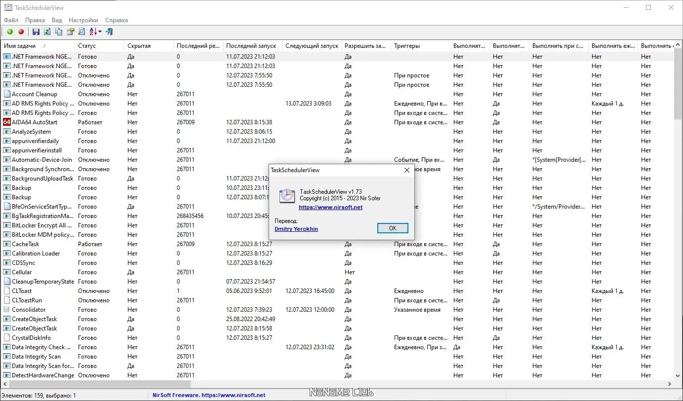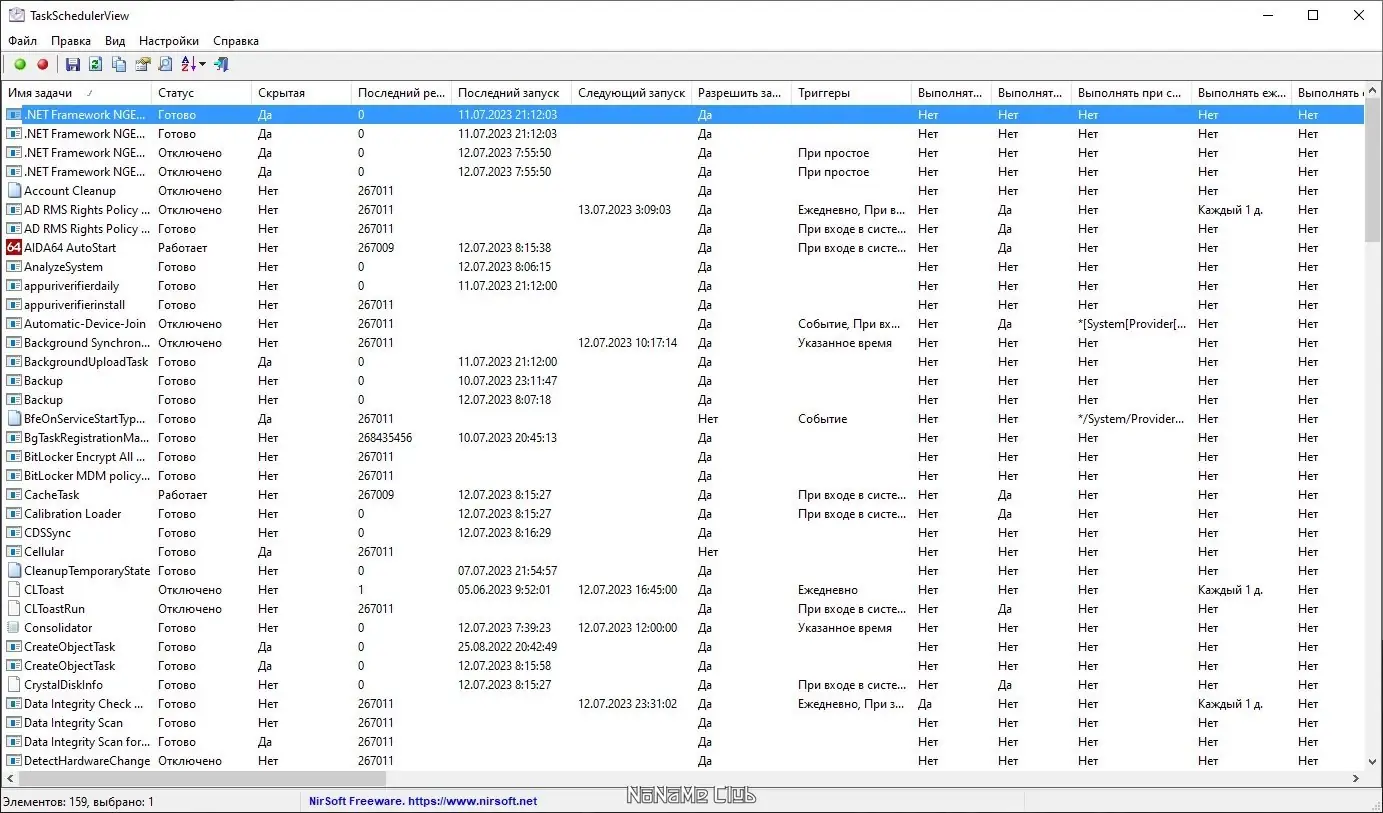 TaskSchedulerView — это компактная портативная утилита для просмотра и управления задачами планировщика в операционной системе Windows. Программа отображает полный список запланированных задач с детальной информацией по каждой: имя, статус, время последнего и следующего запуска, триггеры, папка и другие параметры. Поддерживает экспорт данных и работу с несколькими задачами одновременно без необходимости установки.