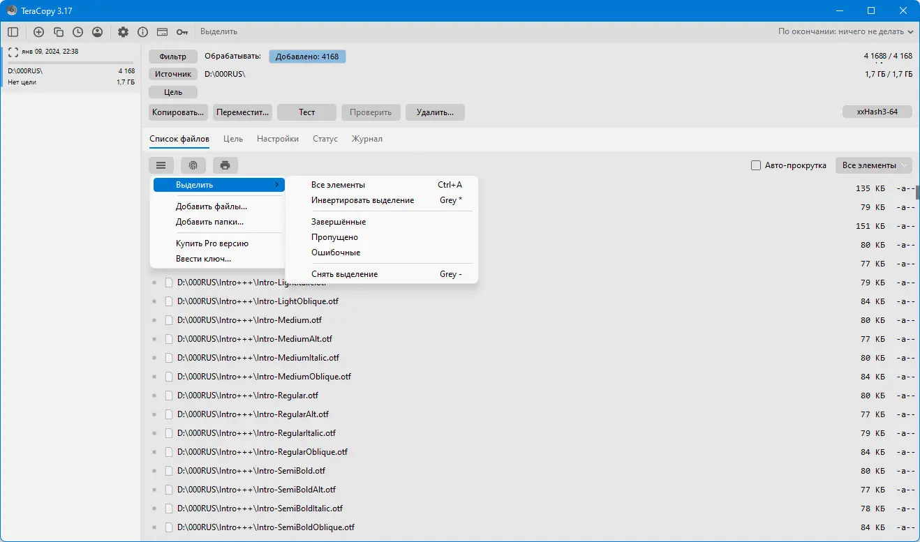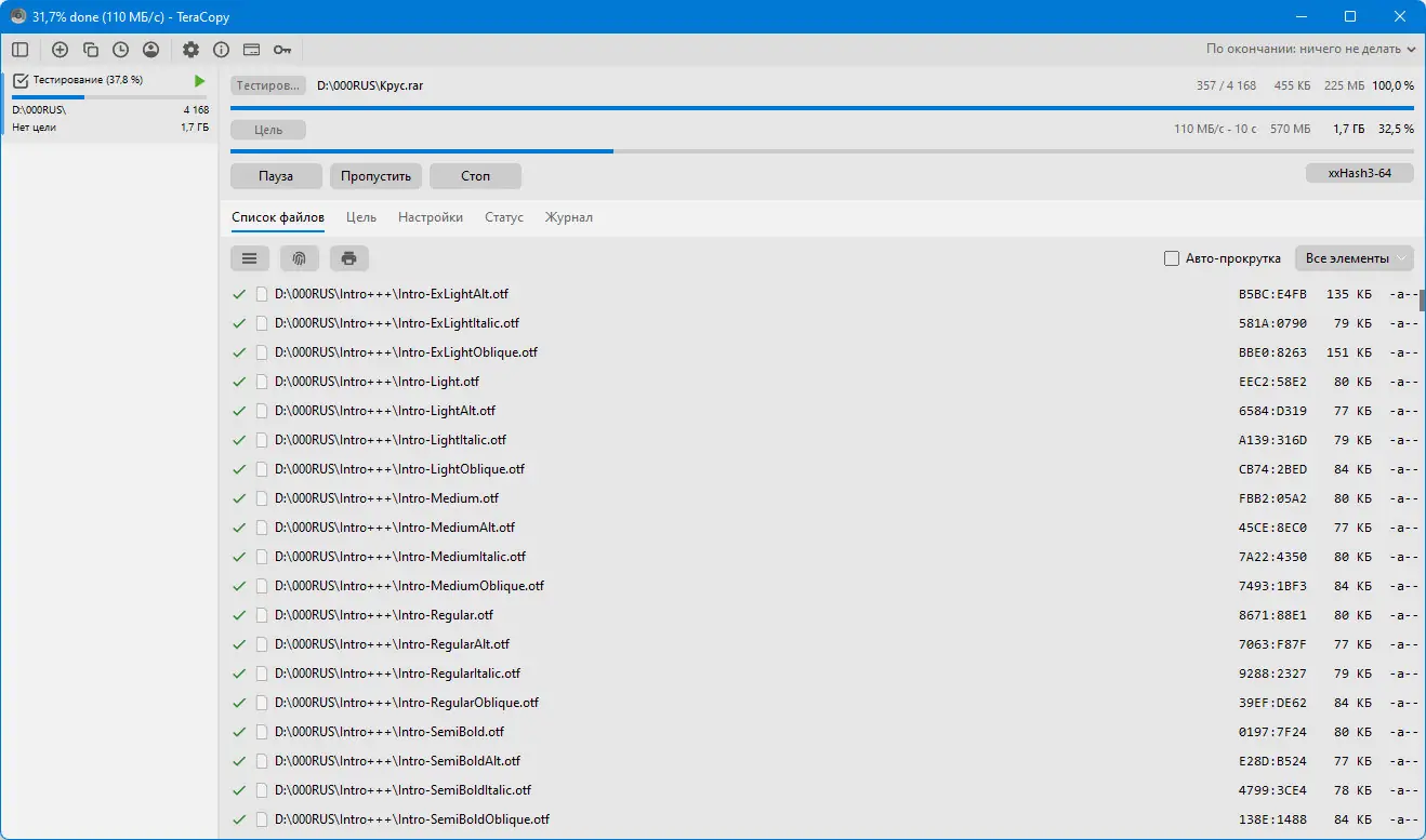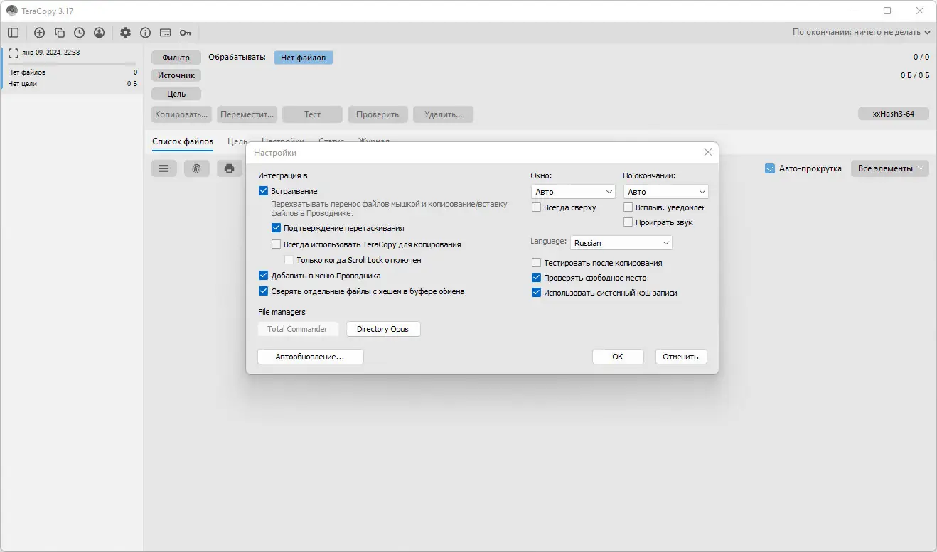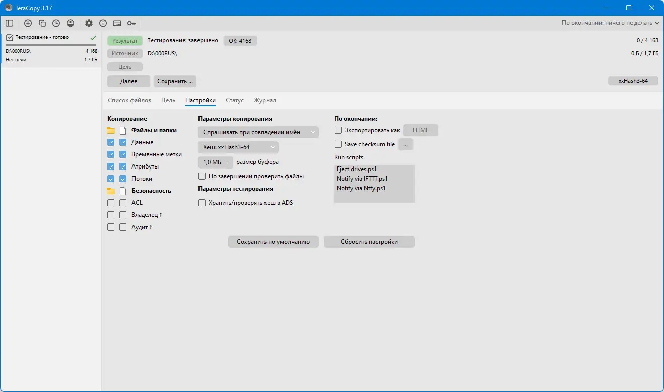 Работа с TeraCopy