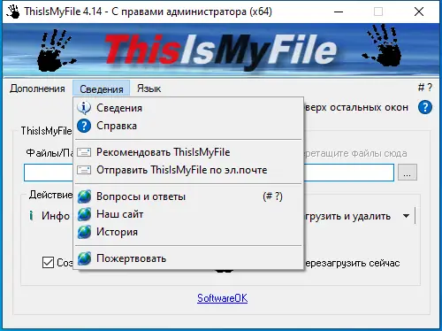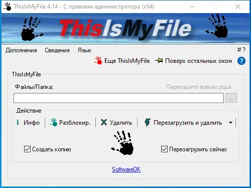 Использование ThisIsMyFile не требует специальных знаний. Достаточно запустить программу, перетащить нужный файл или папку в её окно либо выбрать элемент через диалог выбора. После этого утилита покажет, какие процессы используют данный файл, и предложит разблокировать его. При необходимости можно активировать опцию создания резервной копии. Если файл невозможно удалить сразу, программа добавит его в очередь на удаление при перезагрузке — функция особенно полезна при работе с системными или заражёнными файлами.
