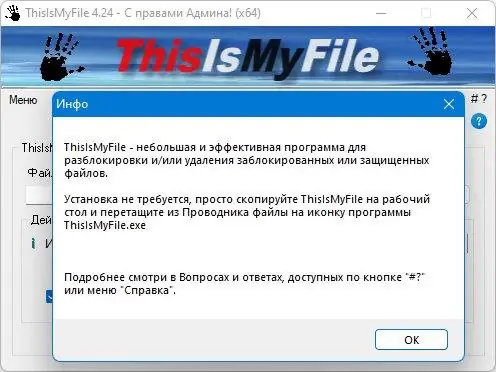 Использование ThisIsMyFile не требует глубоких технических знаний. Достаточно перетащить нужный файл или папку в окно приложения либо выбрать его с помощью кнопки выбора. После этого программа анализирует состояние блокировки и предлагает варианты действий — разблокировать, удалить сразу или назначить удаление при следующем запуске системы. В настройках можно активировать опцию создания копии, чтобы предотвратить случайную потерю данных. Все операции выполняются быстро и не требуют дополнительных подтверждений от системы.
