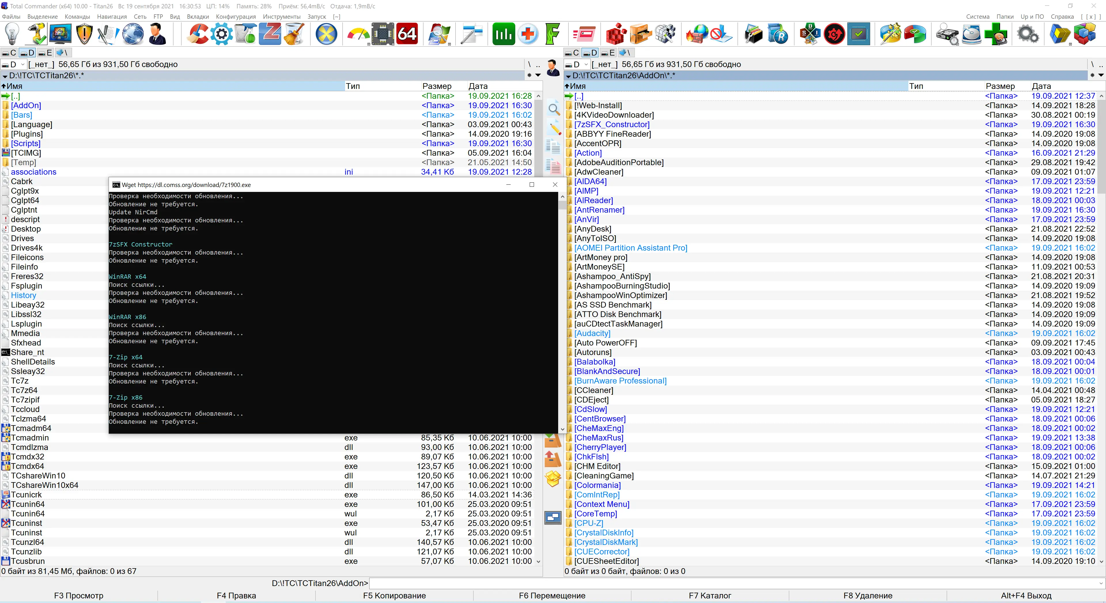 Работа с данной сборкой начинается с распаковки исполняемого файла TCTitan26.exe в корень любого логического диска, что критически важно из-за ограничений на длину путей в Windows. После извлечения пользователь получает доступ к интерфейсу Total Commander с семью настраиваемыми панелями, включая специальную область для собственных инструментов. Открытие файлов осуществляется через клавиши F3 (просмотр) и F4 (редактирование), при этом система предлагает выбор из нескольких подходящих программ. Все ассоциации файлов отключены, что предотвращает конфликты и даёт полный контроль над выбором приложения. Обновление встроенных программ выполняется централизованно — более 110 утилит можно обновить одним кликом через официальные источники.