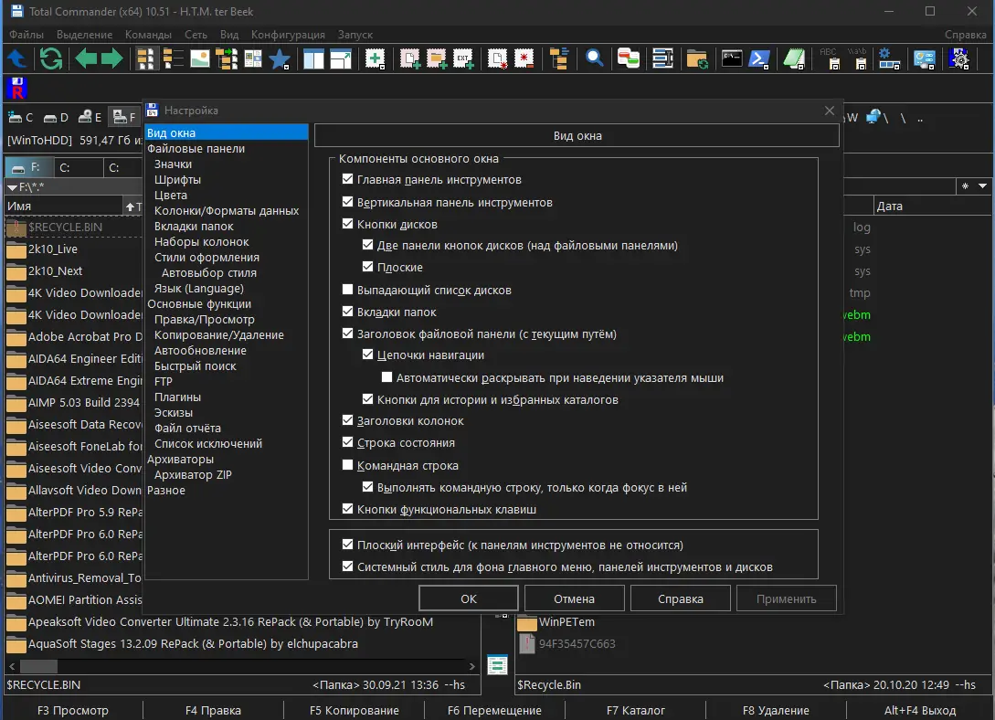 - Поддержка различных типов плагинов: просмотра, архивации, файловых систем и содержимого.