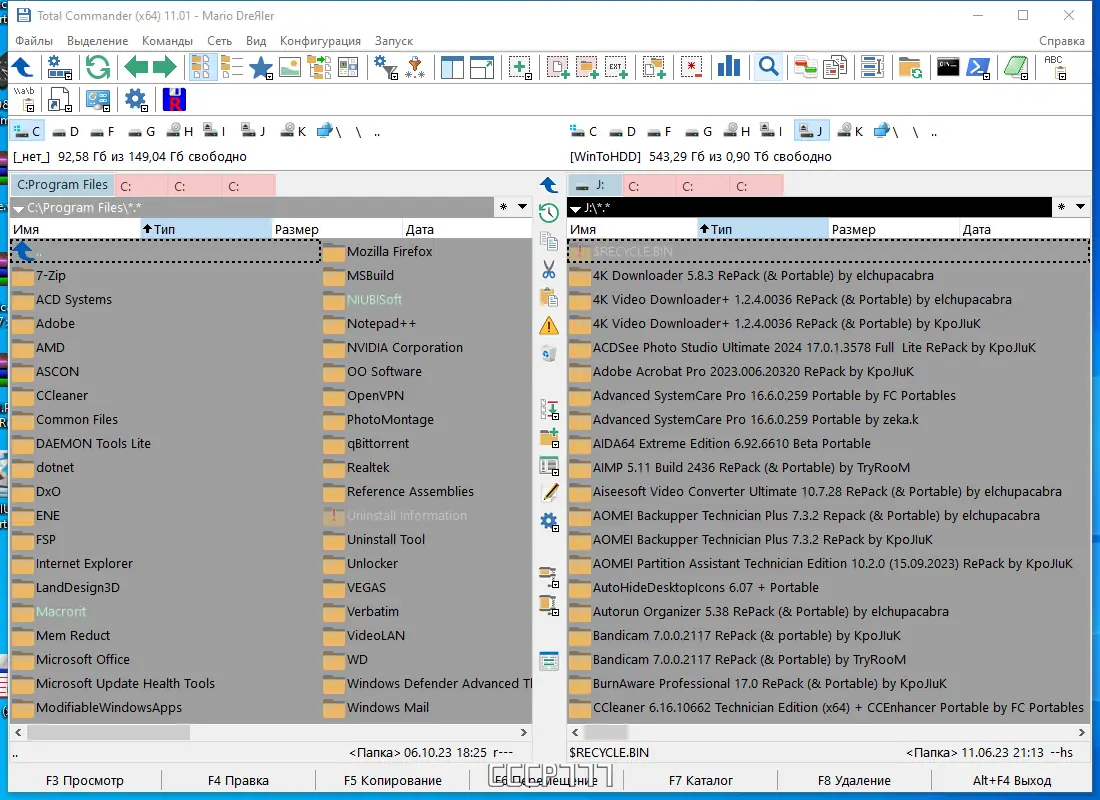 Портативная сборка Total Commander 11.01 с расширенным набором плагинов, скриптов и утилит для эффективного управления файлами и папками. Программа поддерживает обе разрядности — x32 и x64 — и автоматически выбирает версию в зависимости от операционной системы. Все компоненты строго соответствуют разрядности системы, а установка возможна даже на 64-битные ОС без потери функциональности. Сборка не содержит ненужного стороннего ПО и готова к использованию сразу после распаковки.