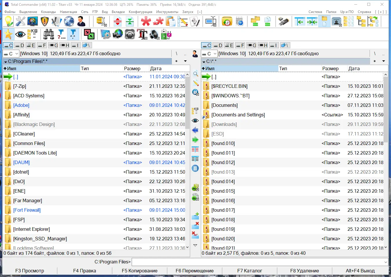 Total Commander — это классический файловый менеджер, разработанный для повышения производительности при работе с дисками и сетевыми ресурсами. Он предлагает альтернативный подход к навигации по папкам по сравнению со стандартным проводником Windows, позволяя одновременно просматривать содержимое двух каталогов.