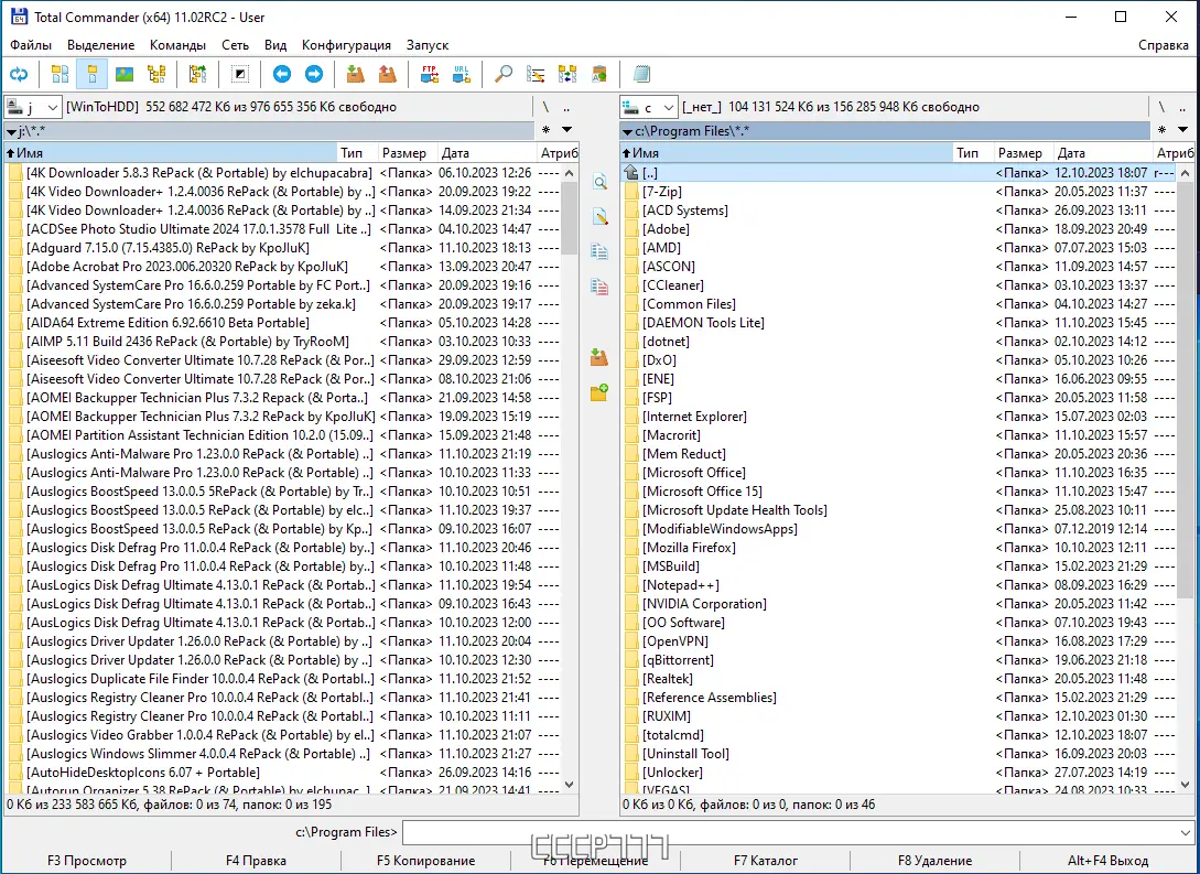 Total Commander — это классический двухоконный файловый менеджер, созданный на основе традиций Norton Commander. Он предлагает эффективный способ управления содержимым жёстких дисков, внешних накопителей и сетевых ресурсов. Интерфейс программы остаётся простым, но при этом обеспечивает доступ к мощным функциям, необходимым как обычным пользователям, так и системным администраторам. Поддержка плагинов расширяет возможности программы, позволяя интегрировать дополнительные форматы и сервисы. Каждая панель может отображать содержимое отдельной папки, что ускоряет операции переноса и сравнения. Программа совместима с различными версиями Windows, включая последние релизы.