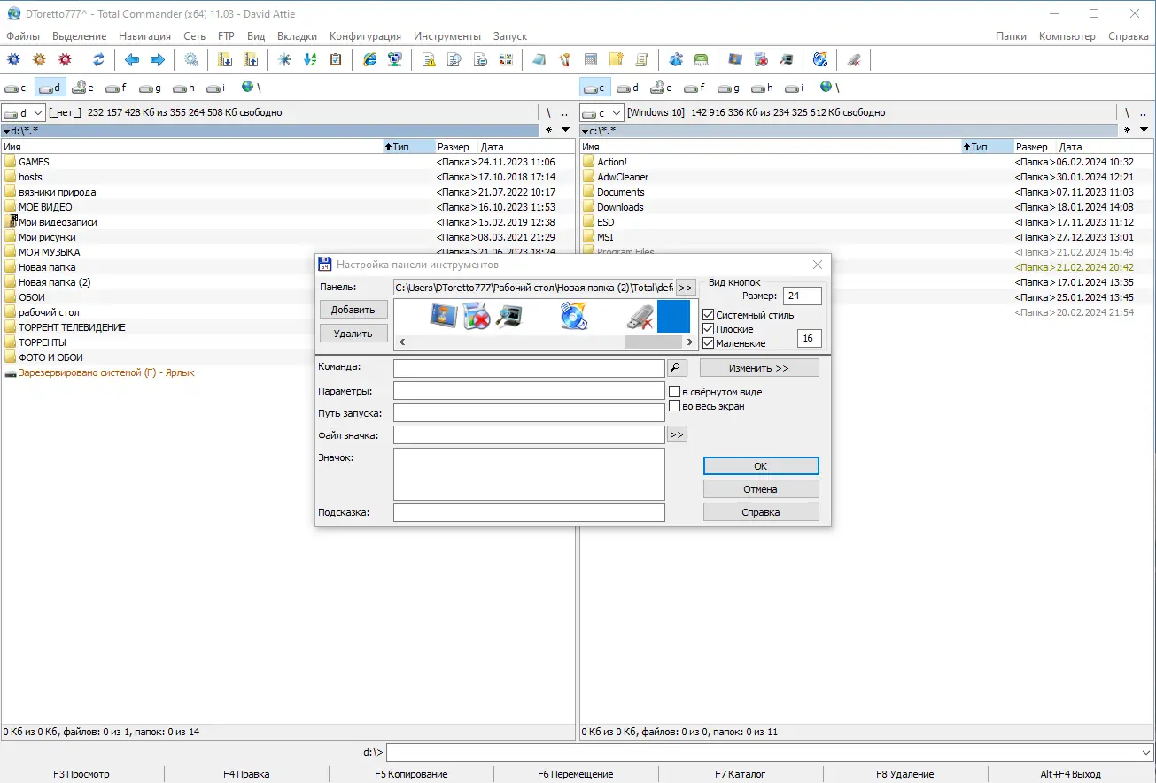 Total Commander продолжает традиции классических файловых менеджеров, предлагая интуитивно понятный интерфейс с двумя панелями, что ускоряет копирование, перемещение и сравнение содержимого. Каждая панель может отображать отдельную папка с полным доступом к содержимому, включая скрытые и системные файлы. Интерфейс адаптирован под современные мониторы, включая поддержку масштабирования и отдельного окна дерева каталогов для каждой стороны, что особенно удобно при работе с большими объемами данных.
