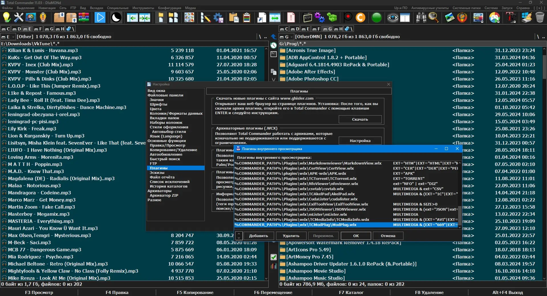 - Поддержка множества плагинов, включая архиваторы, просмотрщики и расширения файловых систем.