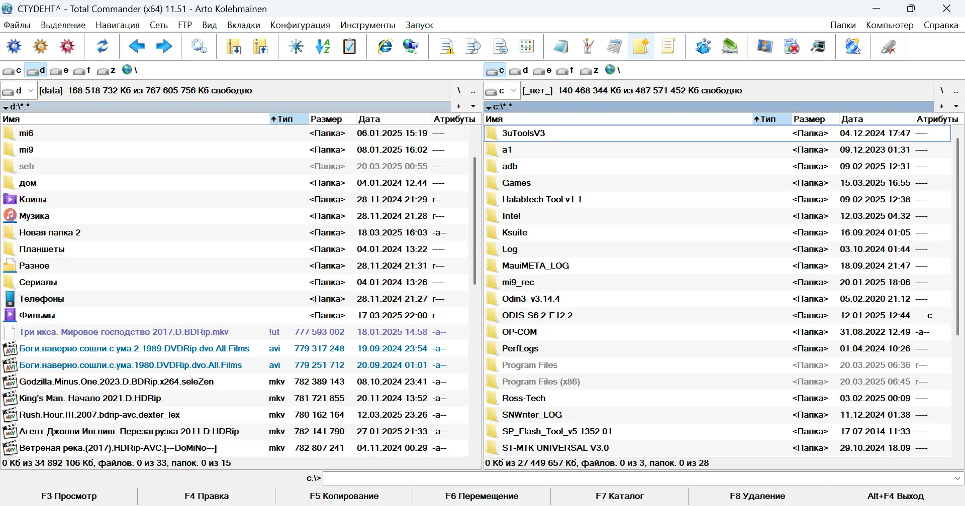 Total Commander — это продвинутый файловый менеджер для операционной системы Windows, сочетающий в себе высокую производительность, стабильность и широкие возможности для работы с файлами и папками. Программа предлагает двухпанельный интерфейс, поддержку плагинов, встроенные инструменты просмотра, архивации и передачи данных, а также гибкую настройку под нужды пользователя. С её помощью можно эффективно управлять содержимым дисков, быстро перемещать, копировать и переименовывать файл, а также работать с архивами и удаленными серверами без необходимости запуска дополнительных приложений.