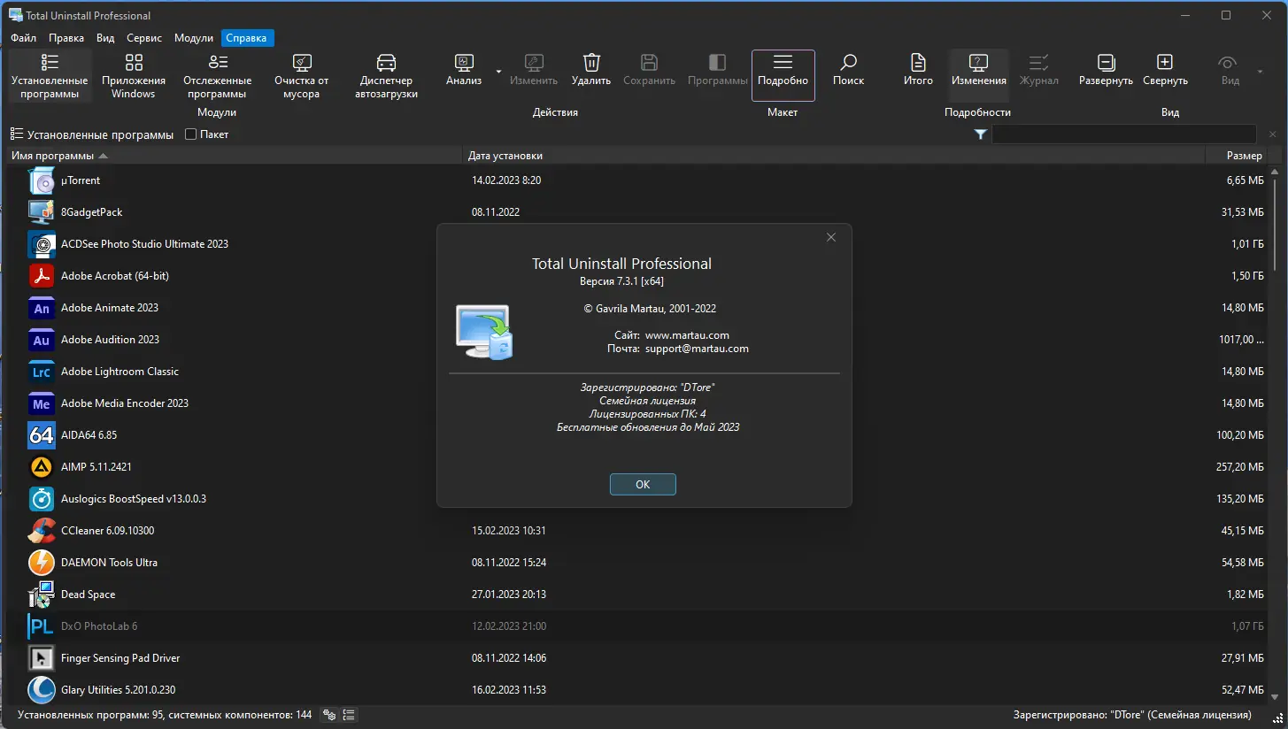 Total Uninstall — это мощная утилита для точного и полного удаления программ с компьютера. Она анализирует изменения в системе до и после установки приложений, обеспечивая чистое удаление без остаточных файлов и записей в реестре. Программа подходит как для новичков, так и для опытных пользователей, стремящихся поддерживать систему в оптимальном состоянии.