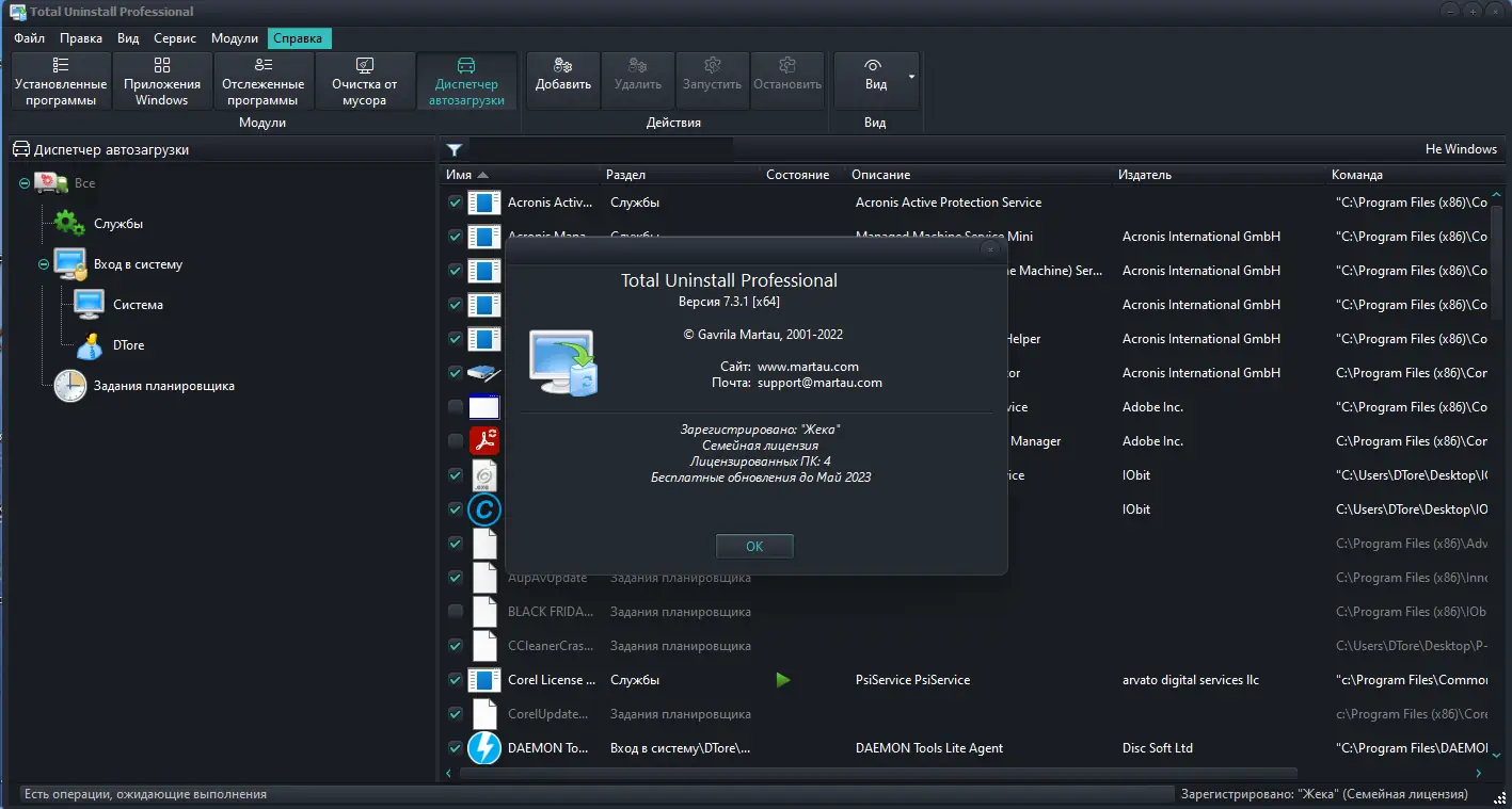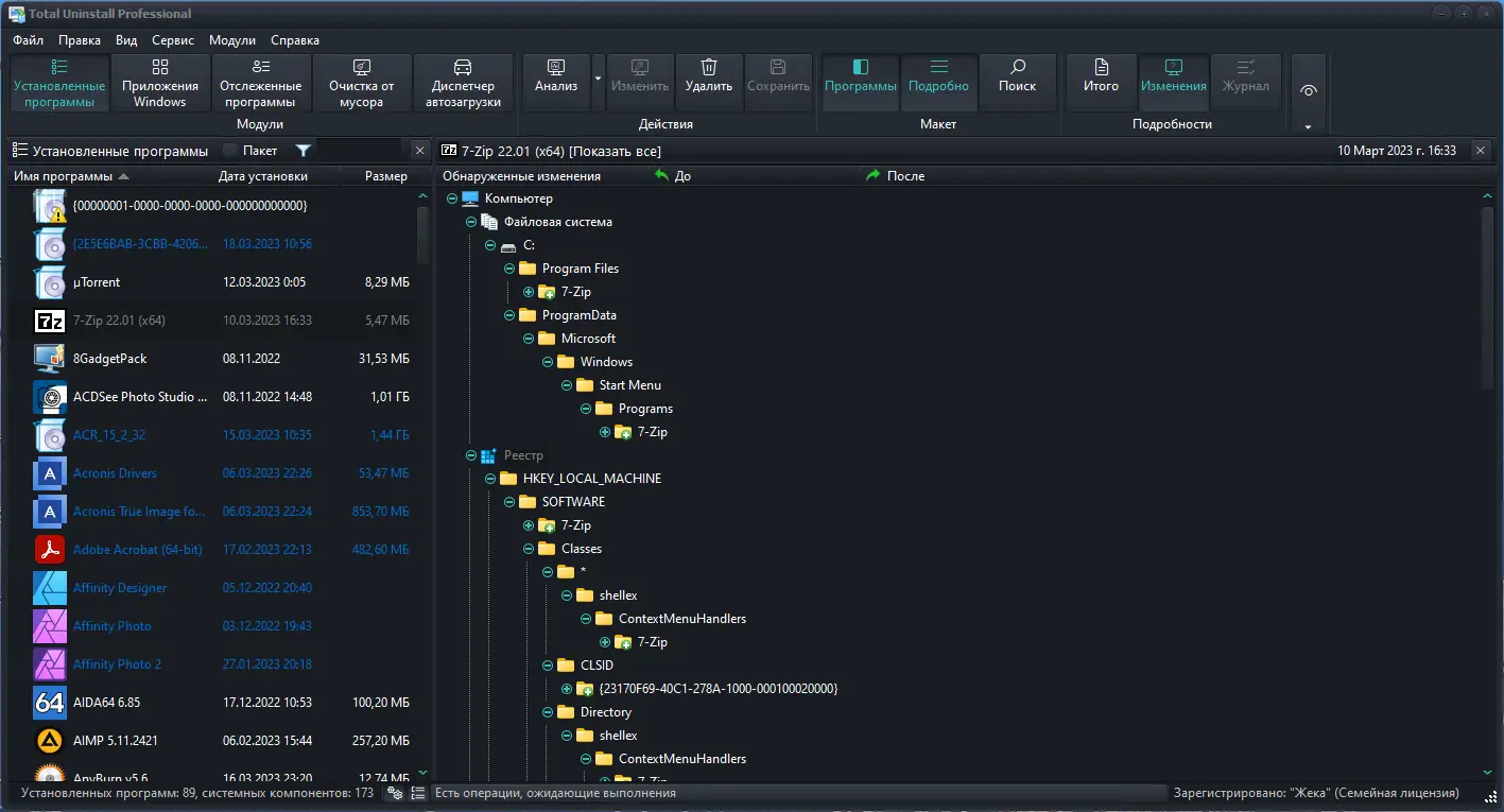 Total Uninstall эффективно справляется с задачей удаления программ, которые оставляют после себя мусор в системе. В отличие от стандартного деинсталлятора Windows, этот инструмент предварительно фиксирует состояние системы до и после установки приложения, что позволяет точно определить все внесённые изменения. Благодаря такому подходу, при удалении программы удаляются не только основные файлы, но и скрытые записи в реестре, временные данные и папки в профилях пользователей.
