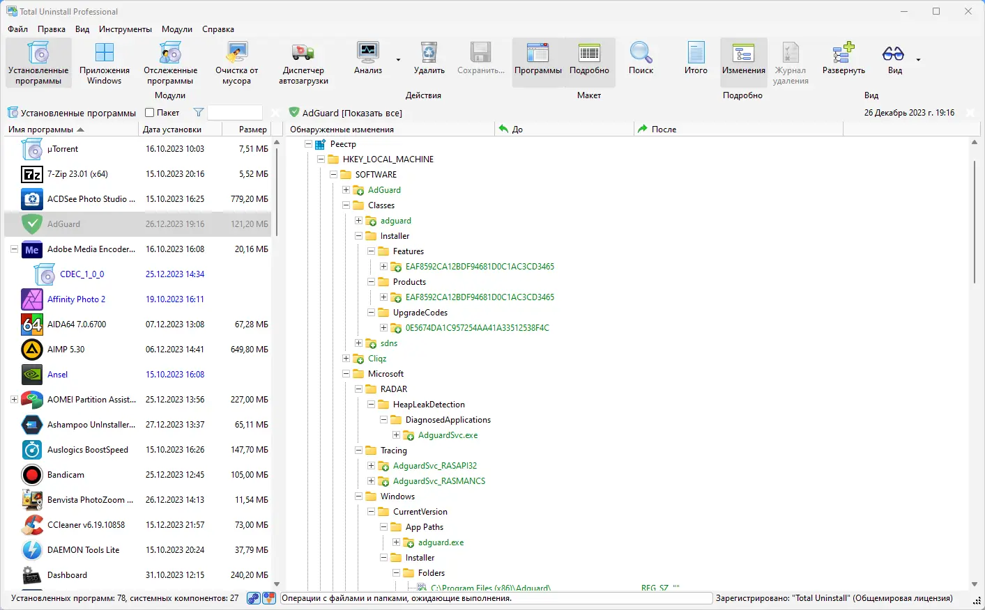 - Точный анализ изменений в реестре и файловой системе.